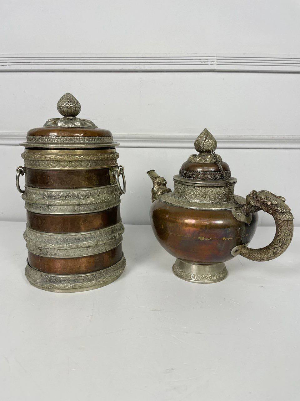 Антикварный чайник и ёмкость для хранения чая или трав XIX века, Непал.