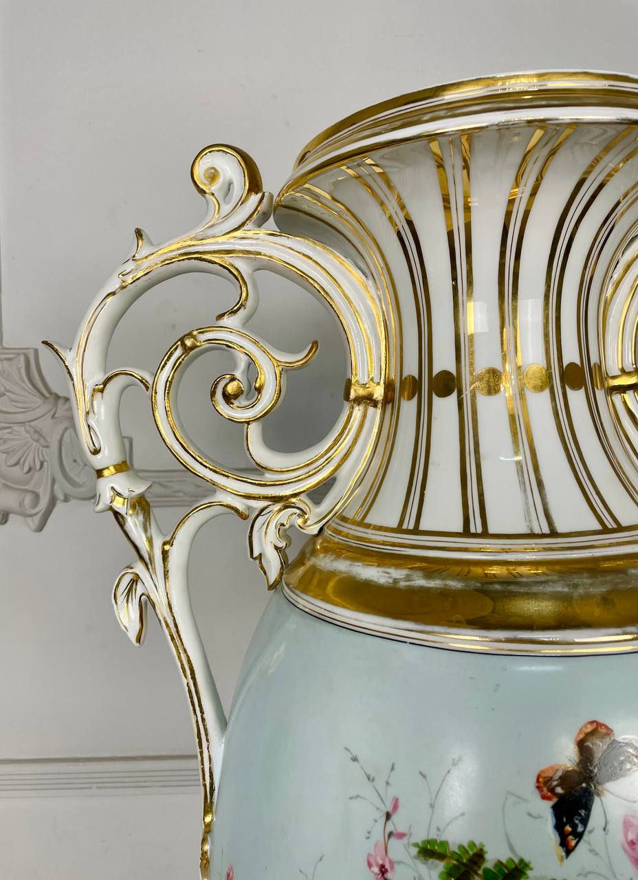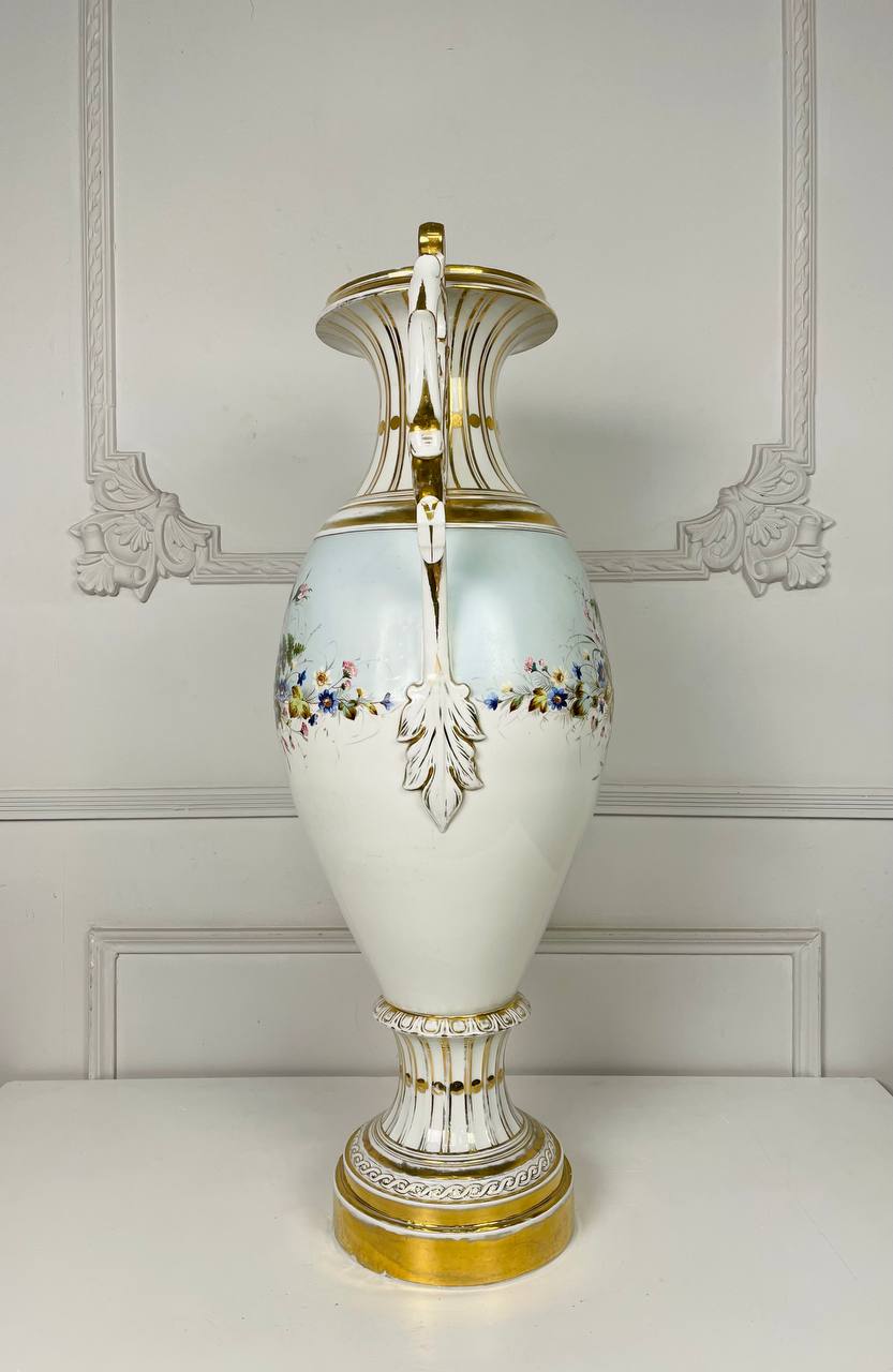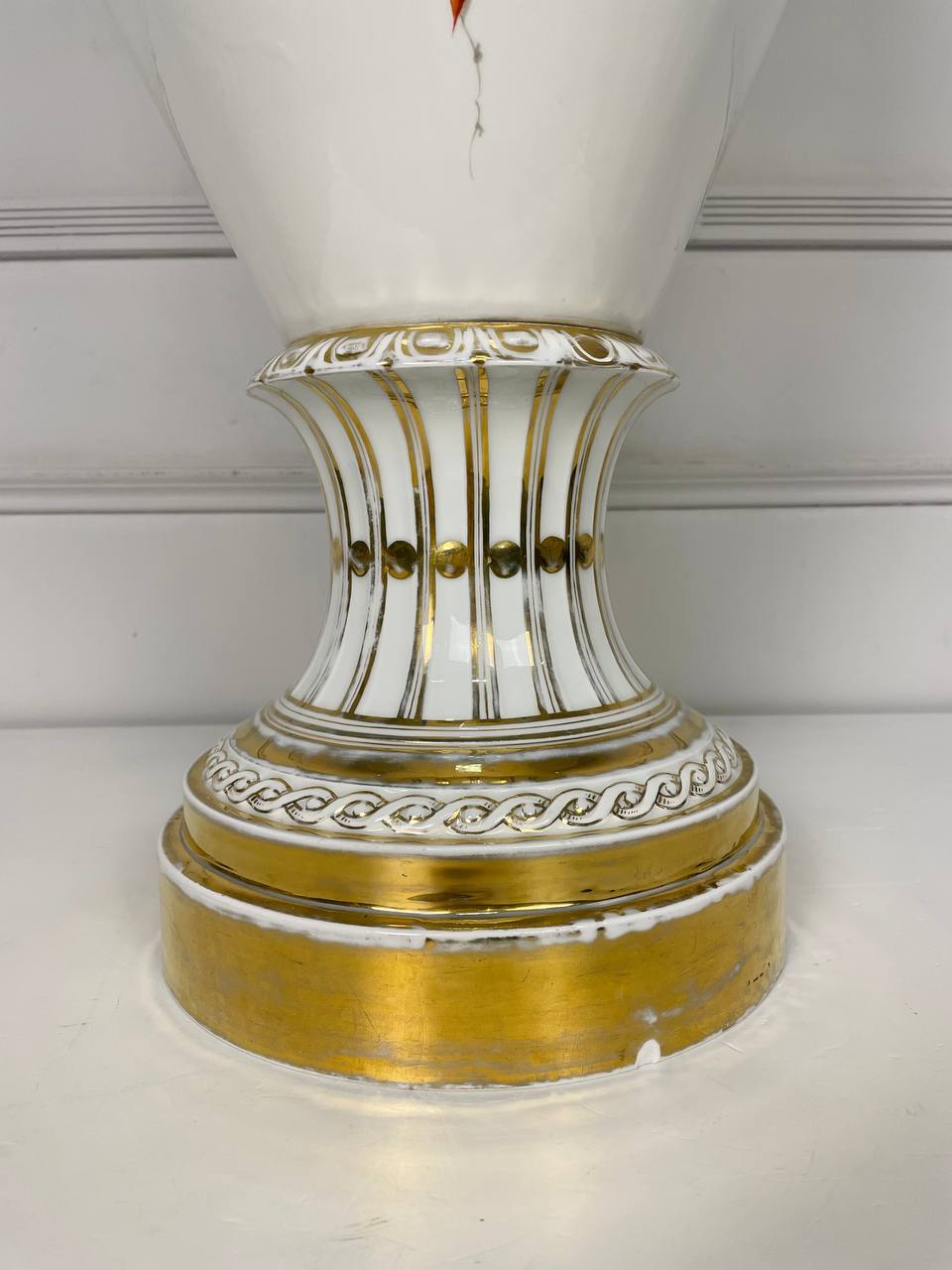 Сохранность: без марки, небольшая профессиональная реставрация ручек, сколы по нижнему краю постамента, потёртости позолоты, следы бытования.