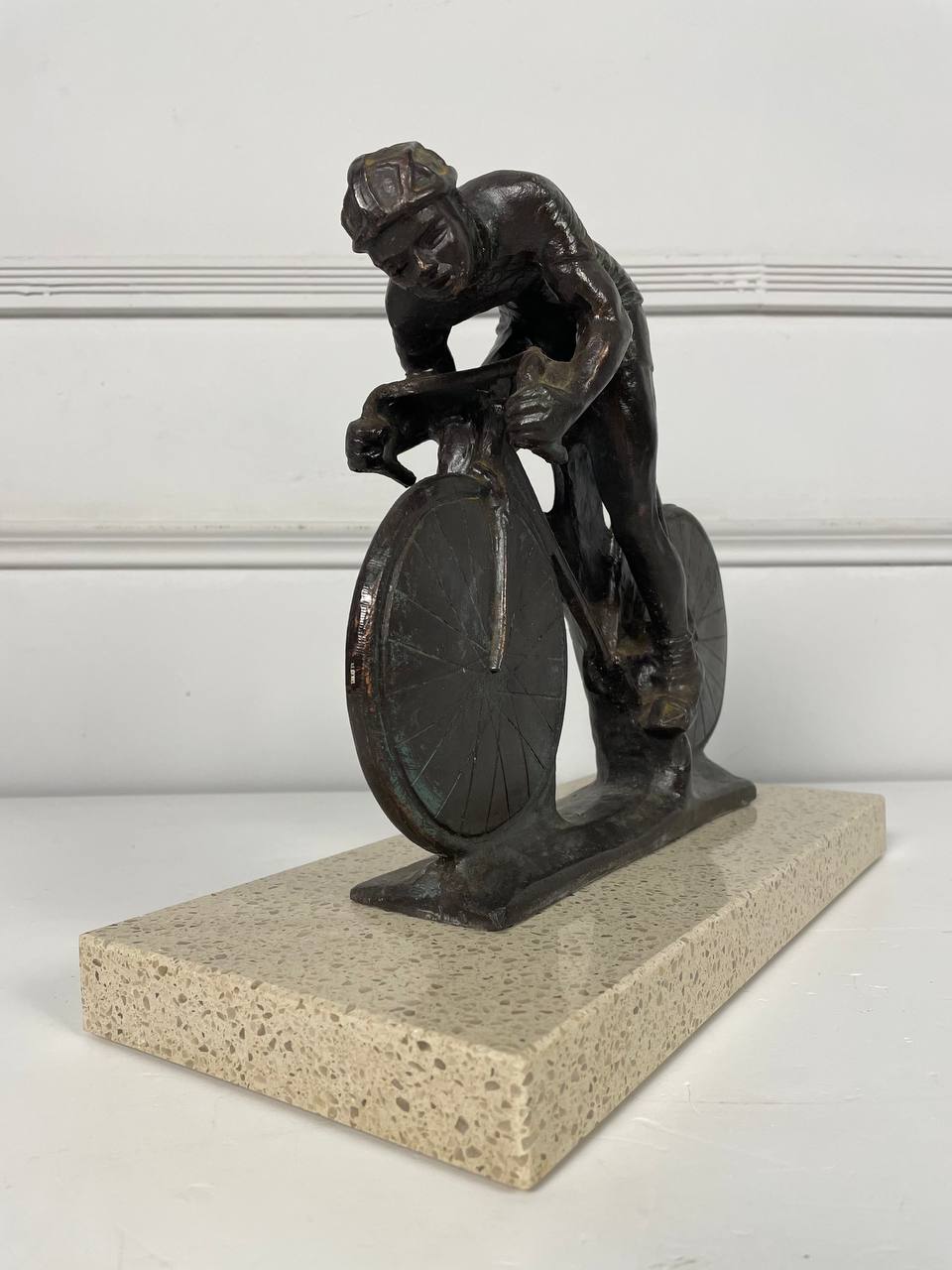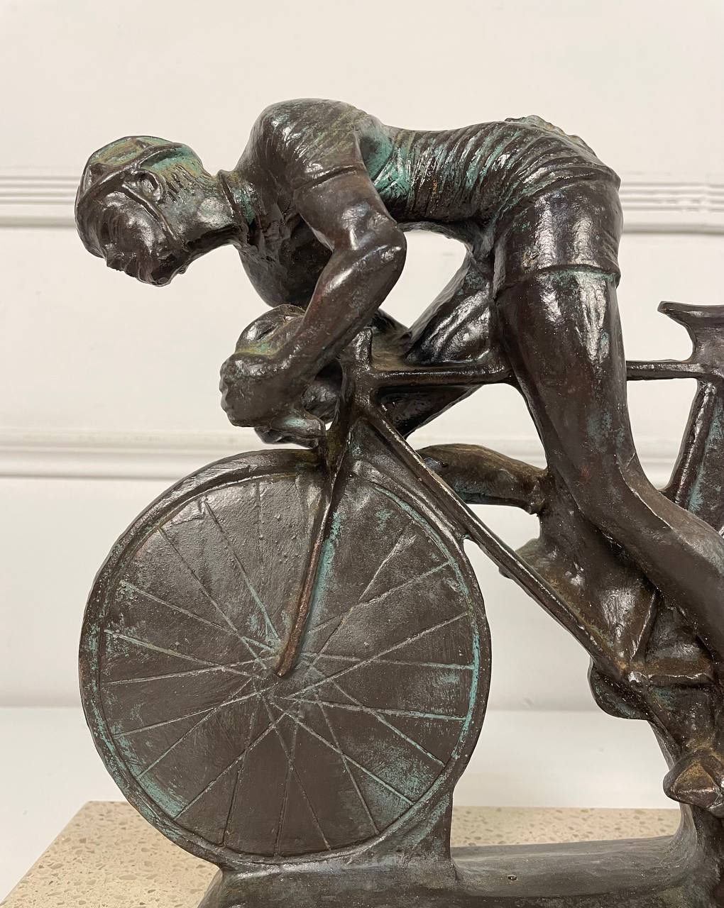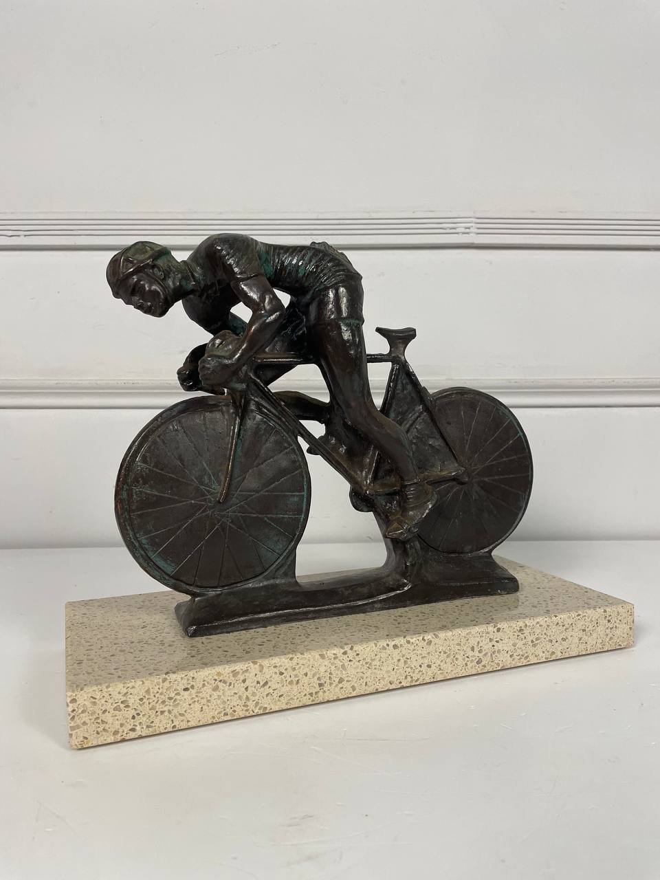 Бронзовая скульптура «Велосипедист» на каменном основании, вторая половина XX века, Европа.