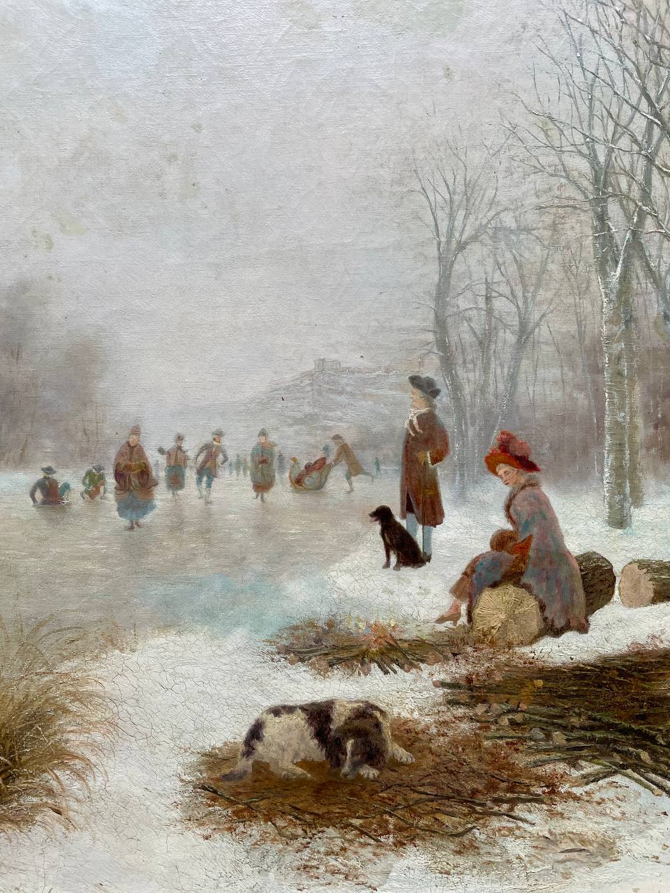 Многофигурная зимняя сцена, выполненная в традиции голландских мастеров XVII века (Хендрик