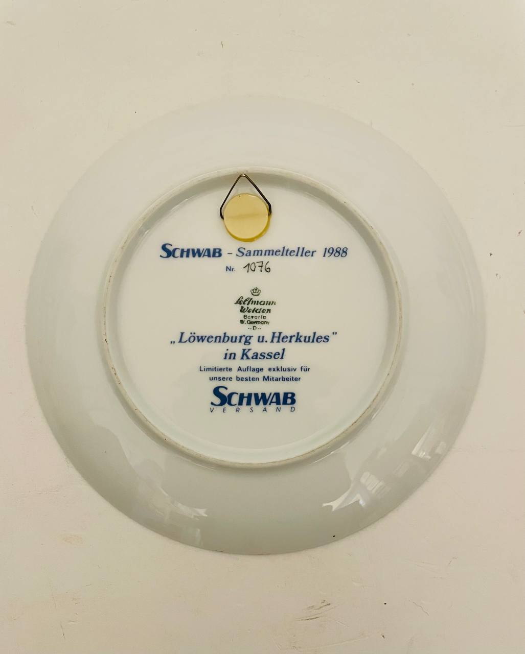 Фарфоровая тарелочка #1076 лимитированного выпуска 1988 года, Schwab, Бавария, Германия.