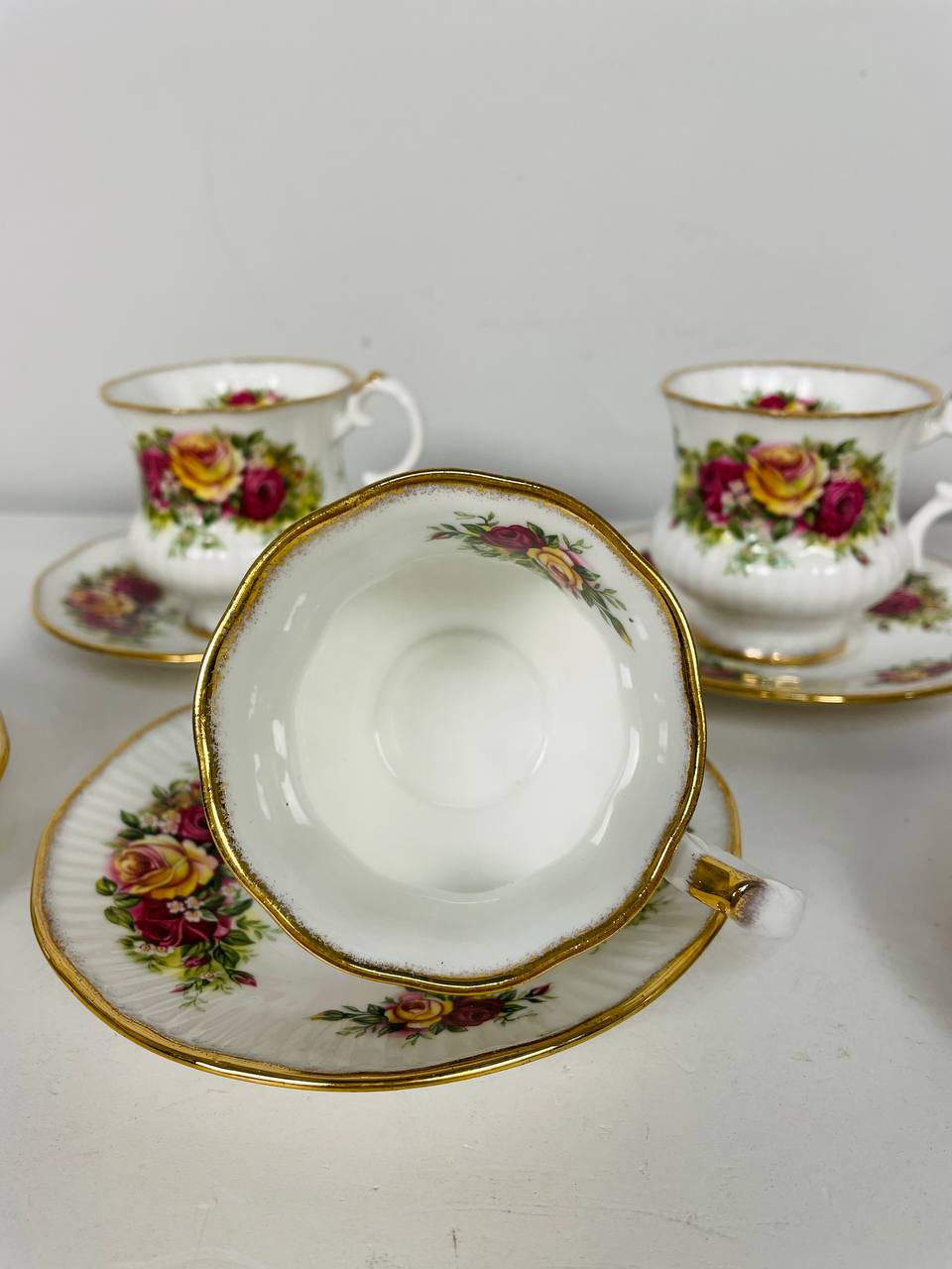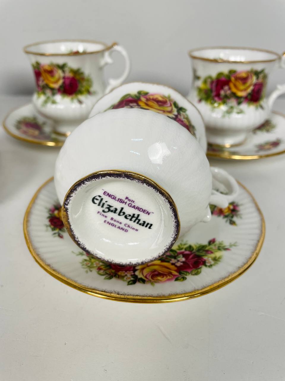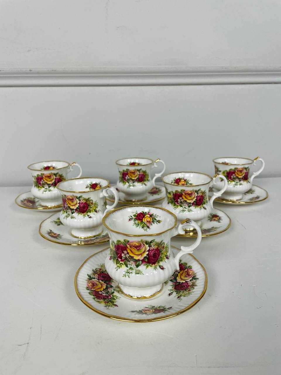 Набор из 6 кофейных пар костяного фарфора серии «Английский сад» с позолотой.