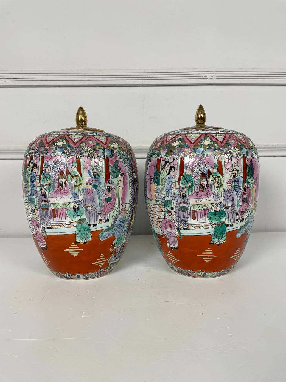 Пара больших китайских ваз с крышечками (меньшего размера обычно называют чайницами) середины XX века.