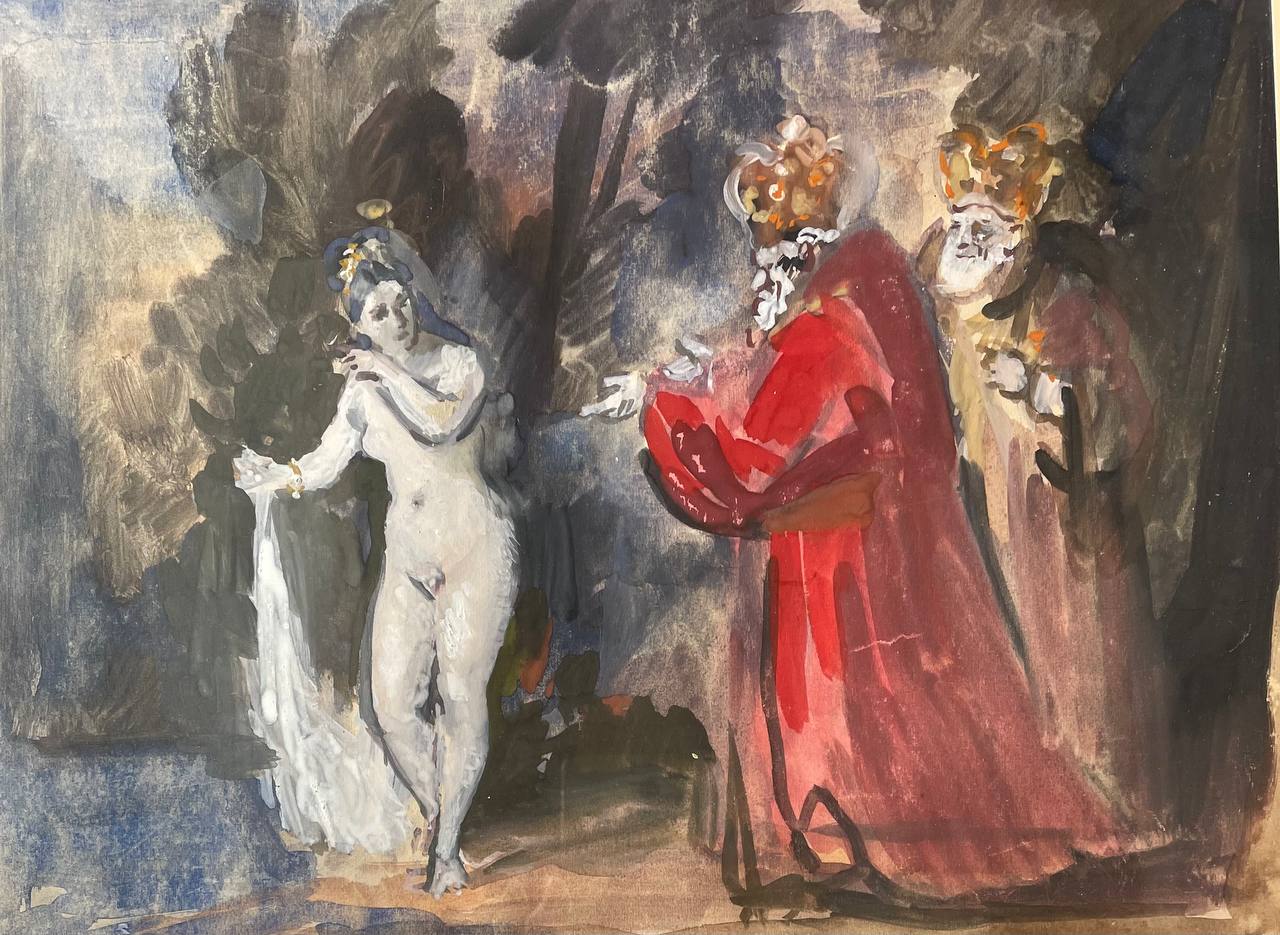 Акварель «Жанровая Сцена» Рудаков К.И., Россия