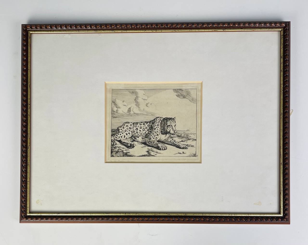 Антикварная гравюра «Леопард» Начало XX века, Франция. Современная рама и паспарту. Размер 51х38 см