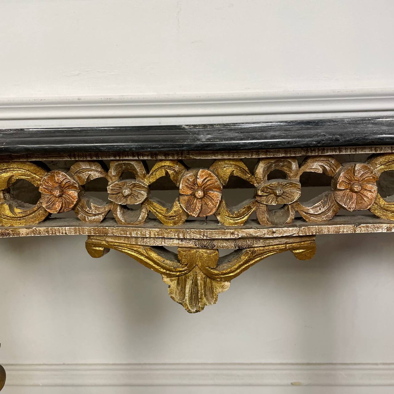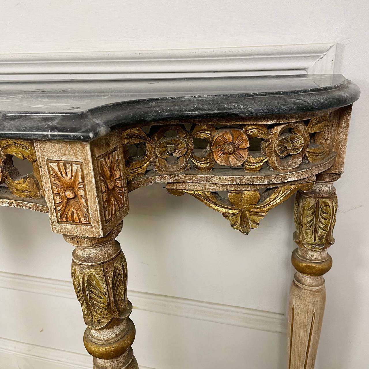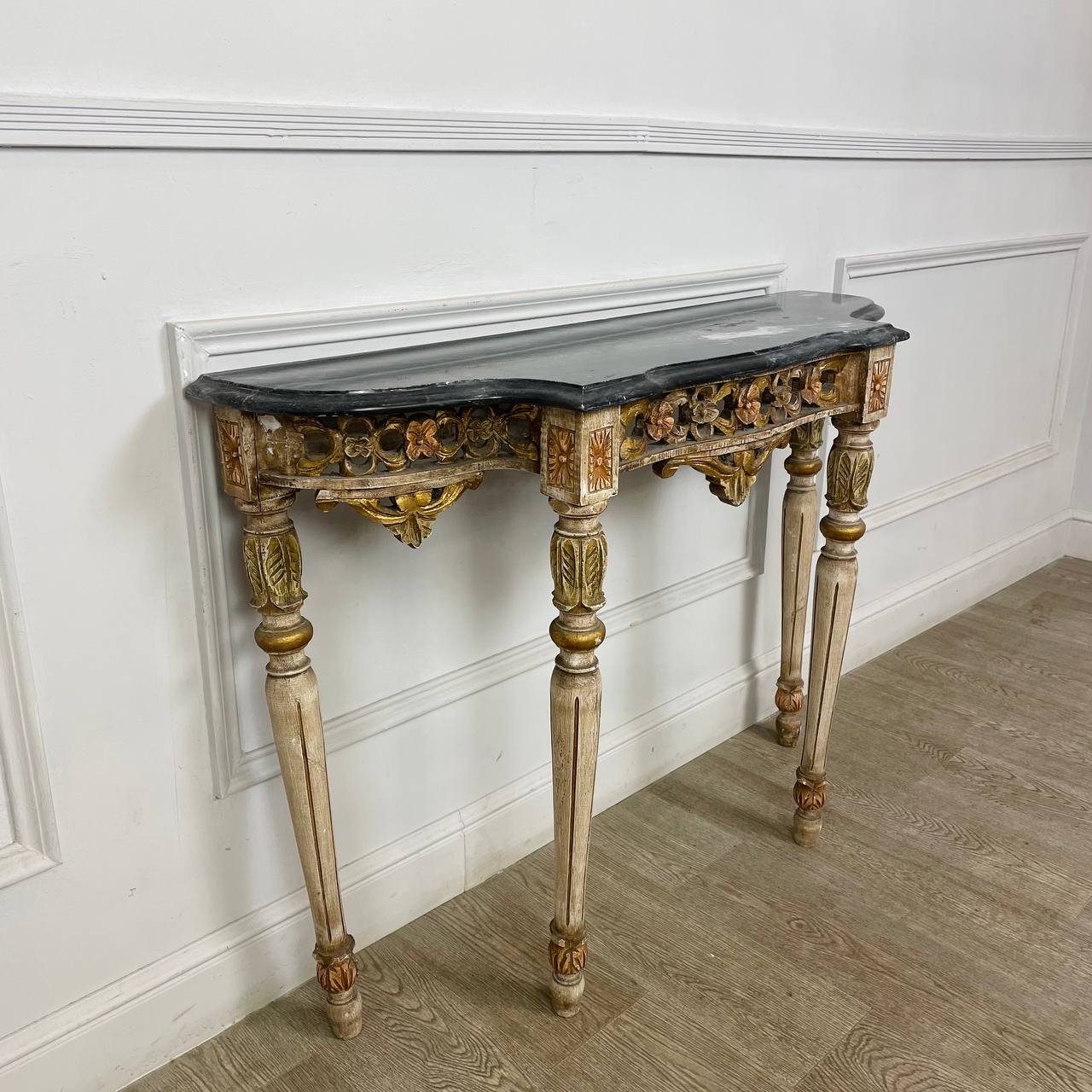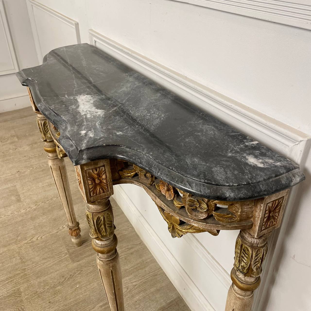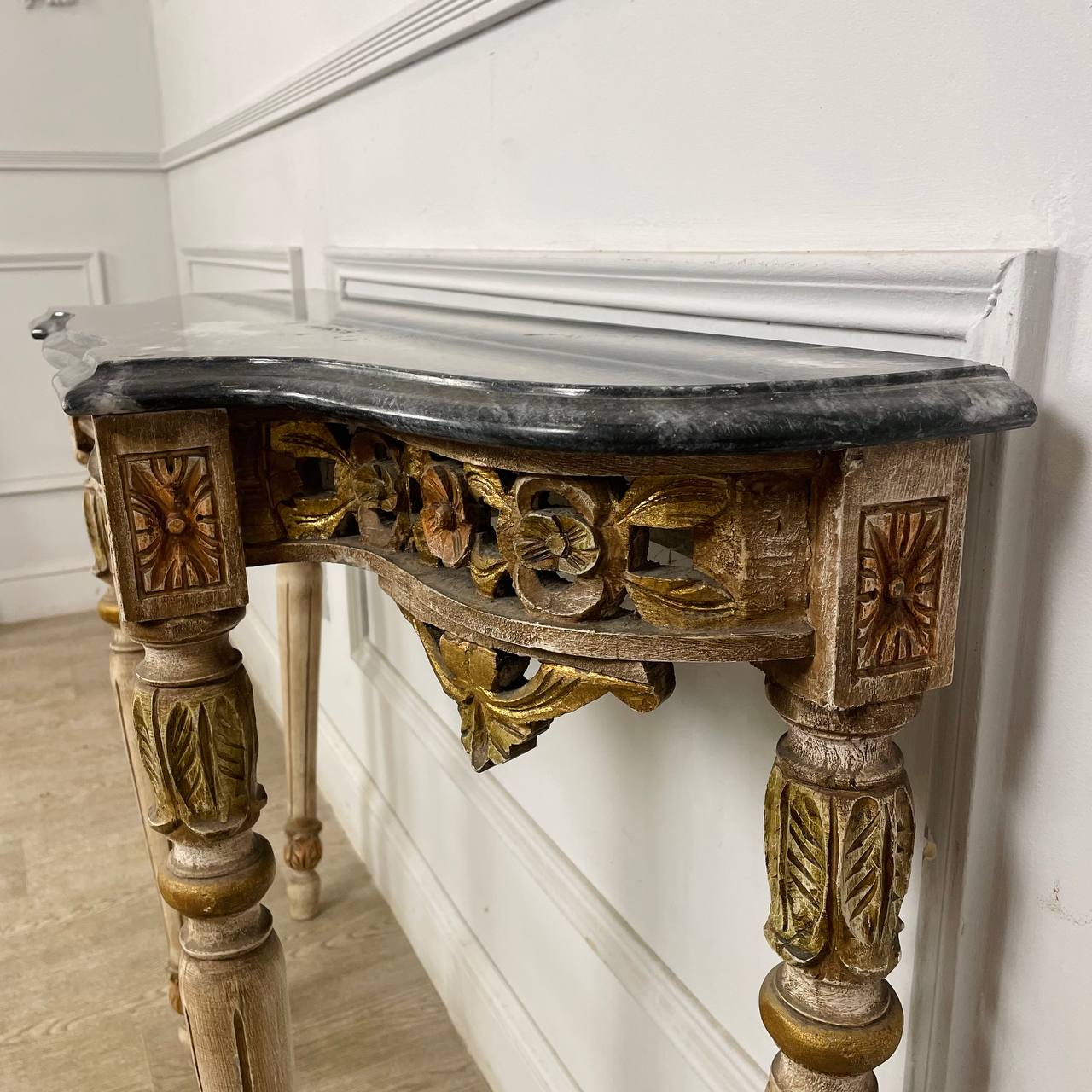 Европа, Франция. Рубеж XIX-XX вв. Фигурная столешница из натурального мрамора красивого серого цвета. Позолота. Размер 104х32х76h см.