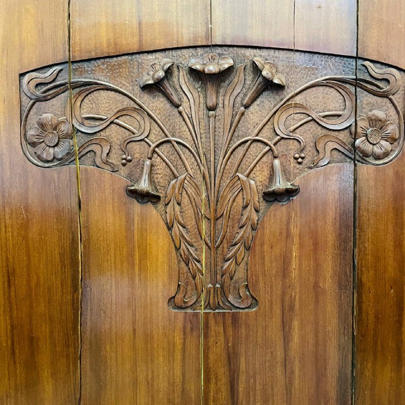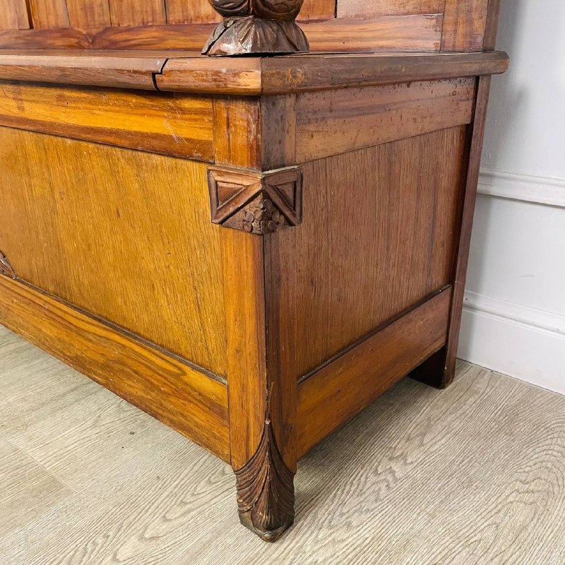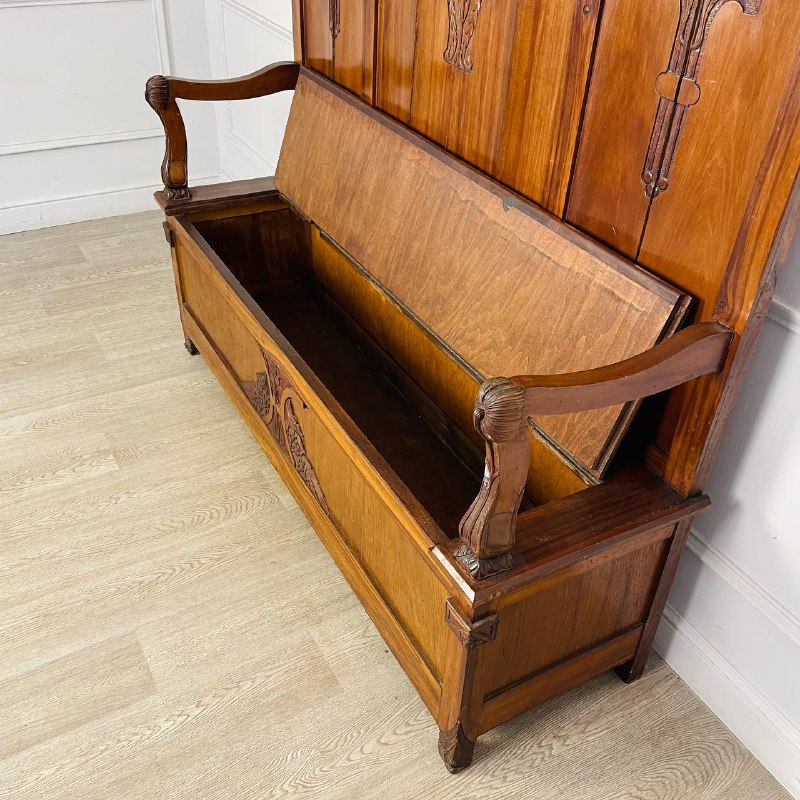 Скамья с высокой спинкой в стиле Ар-Нуво, 1920-е годы, Франция. Массив ореха, резьба. Размер: 158х45х48/158h см.