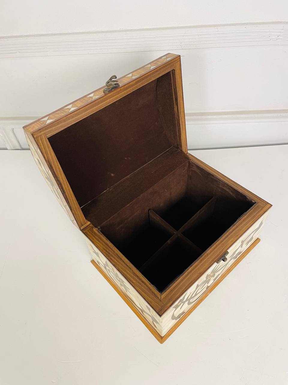 Антикварная БОЛЬШАЯ шкатулка середины XX века. Выполнена из натурального перламутра и ценных пород дерева. Внутри два яруса для хранения. Размер 29х21х19h см.