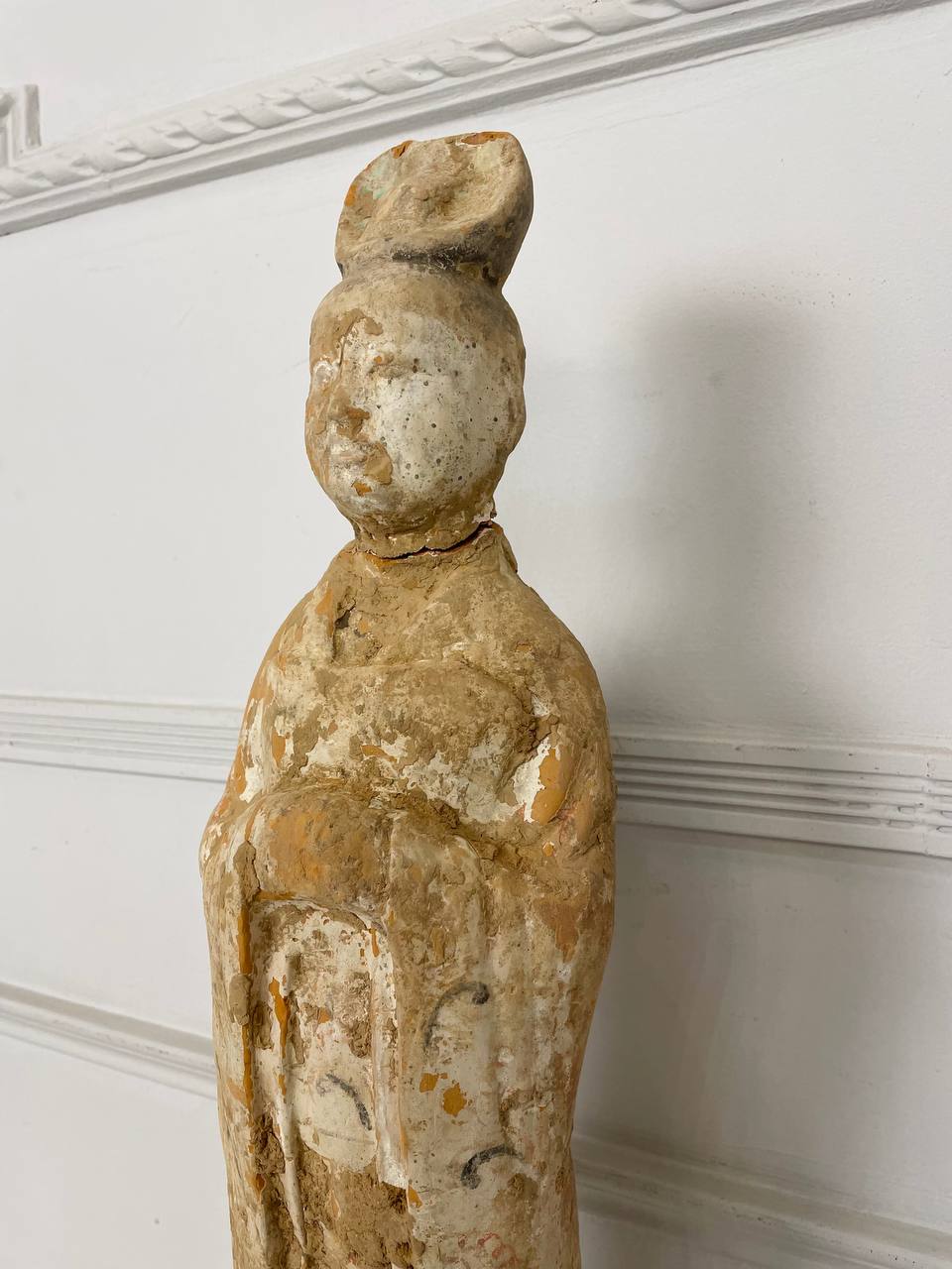 Скульптура придворной дамы, династия Тан (618-907 гг. н.э.), Древний Китай. Терракота, следы цветной росписи. Размер 21х15х69h см.