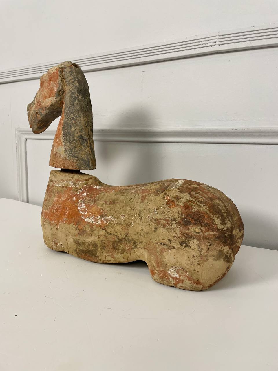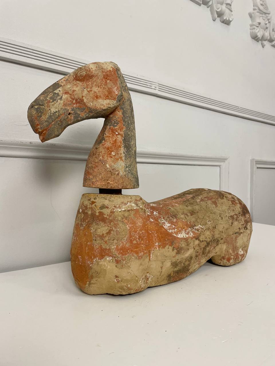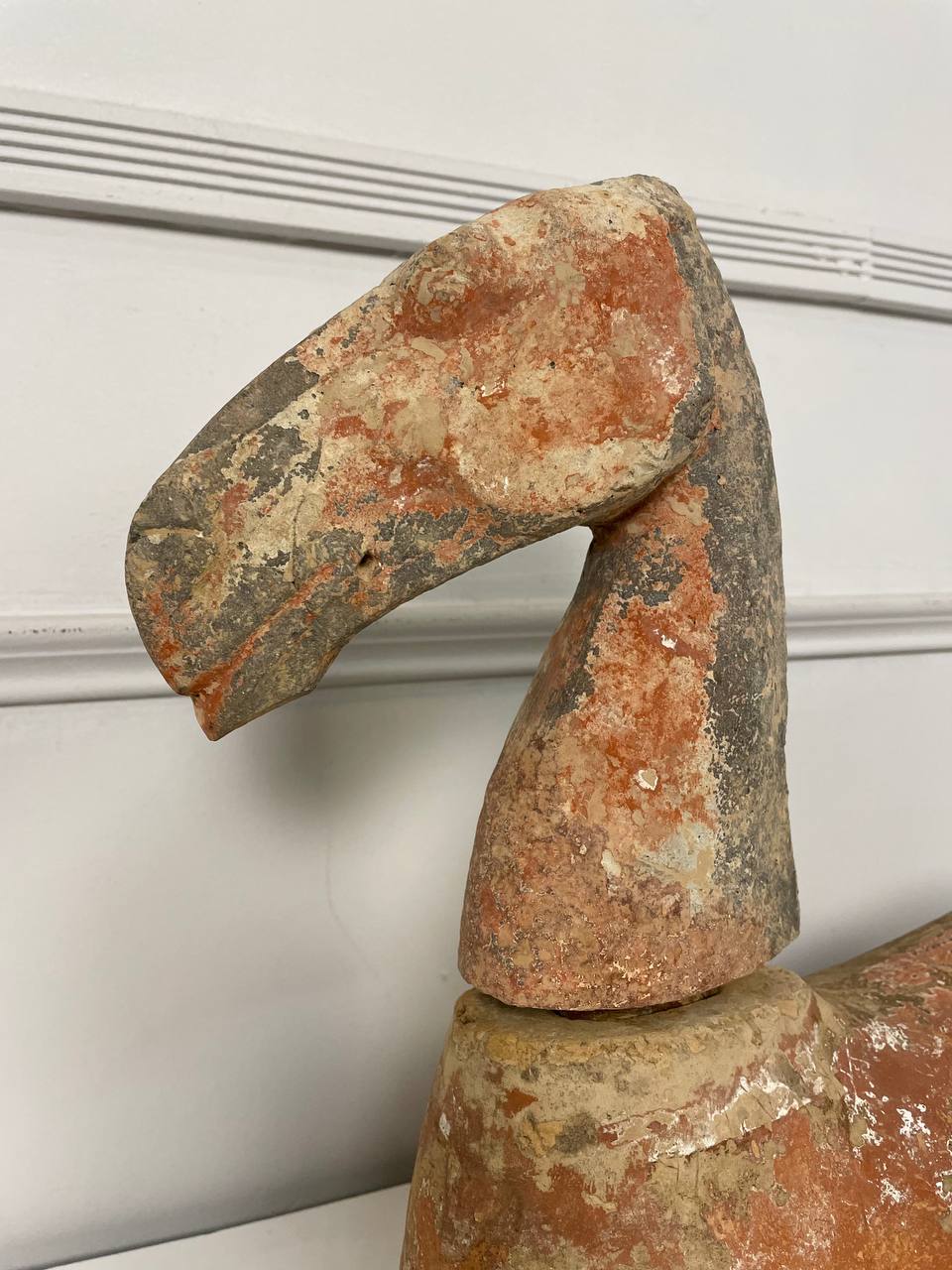 Терракотовая скульптура лошади, династия Хань, Древний Китай (206 до н.э.-220 н.э.). Сохранились следы цветных пигментов. Длина 51 см. Глубина 15 см. Высота 40 см.
