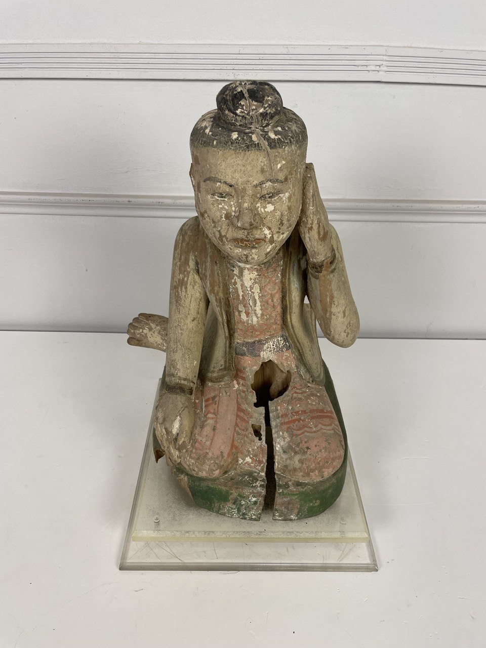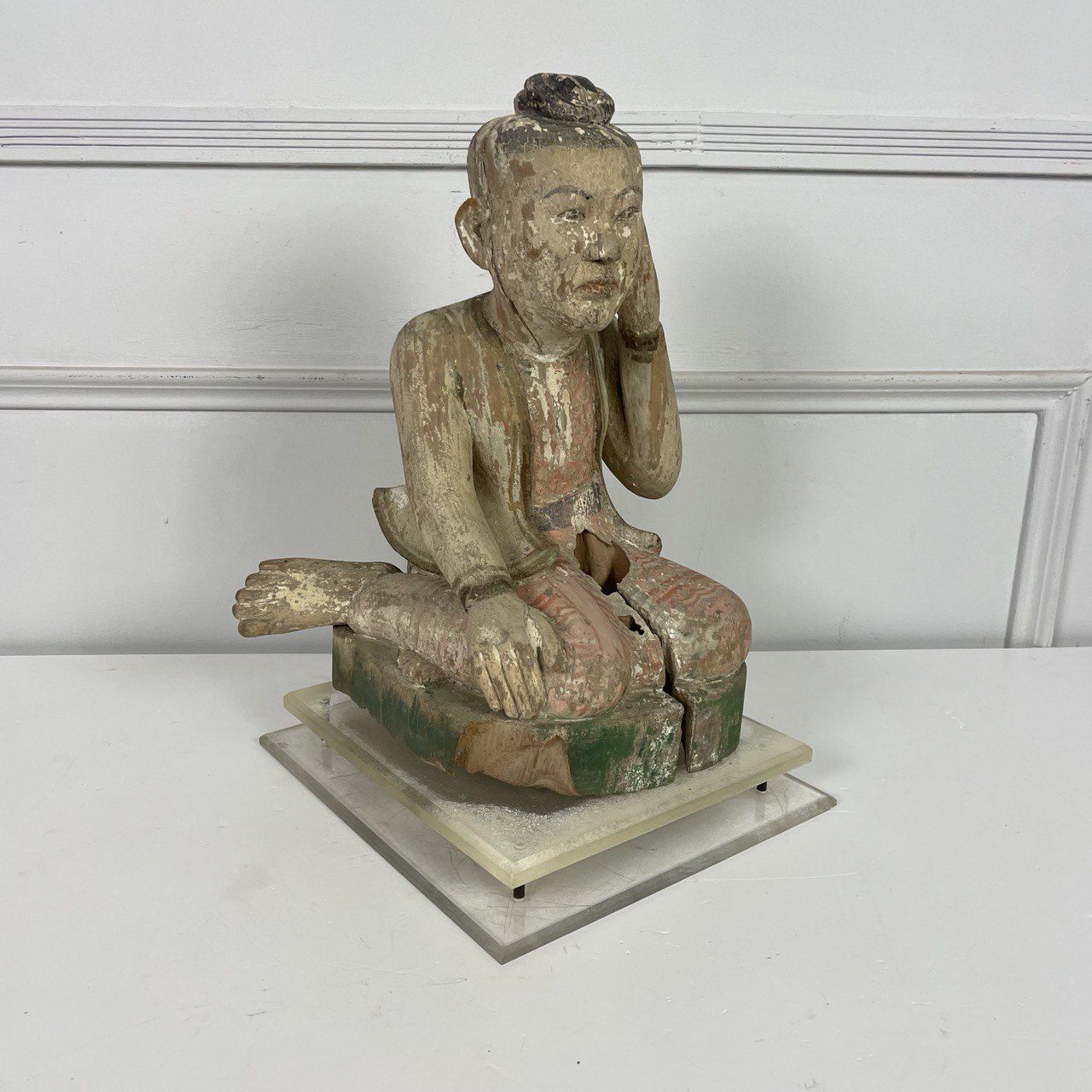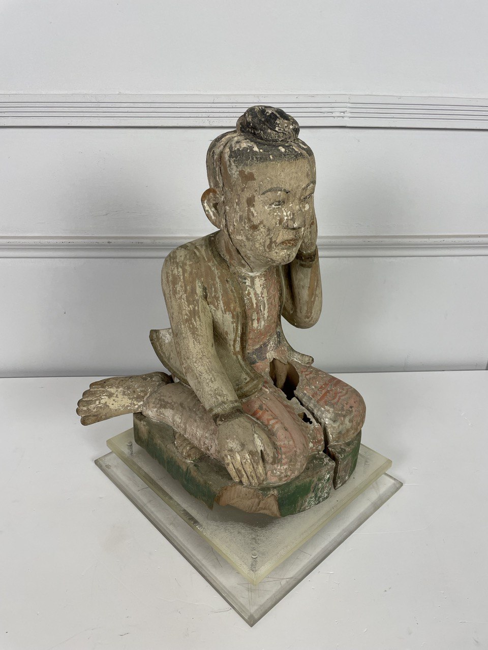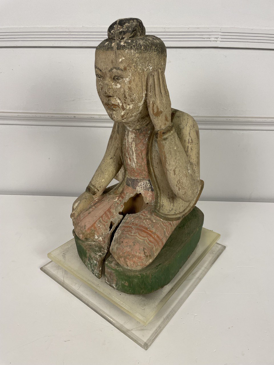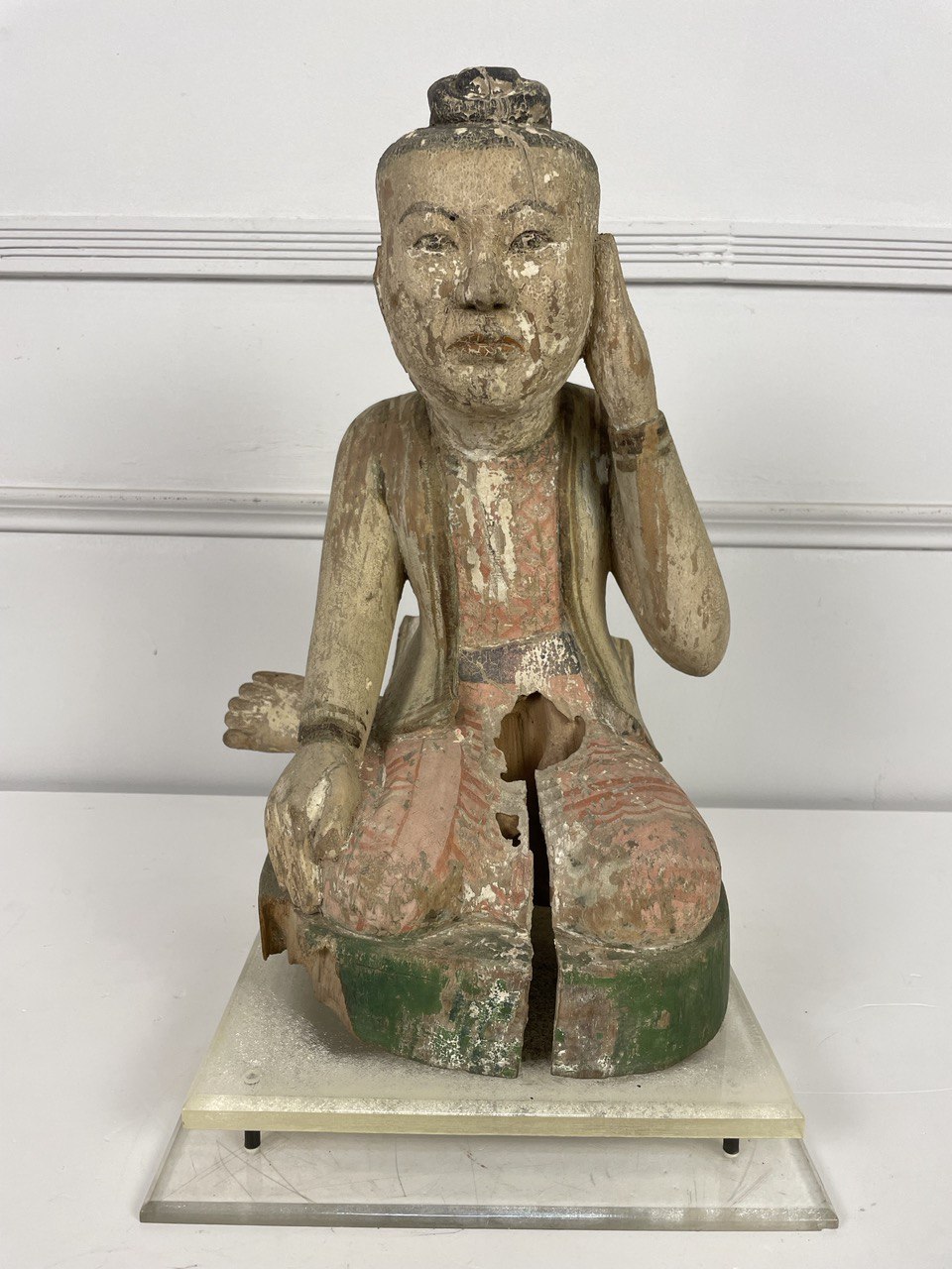Деревянная полихромная скульптура, XIX век, Китай. Изображает придворного эпохи Тан (?). Современная подставка из плексигласа. Резьба, ручная роспись. Размер 30х31х45h см.