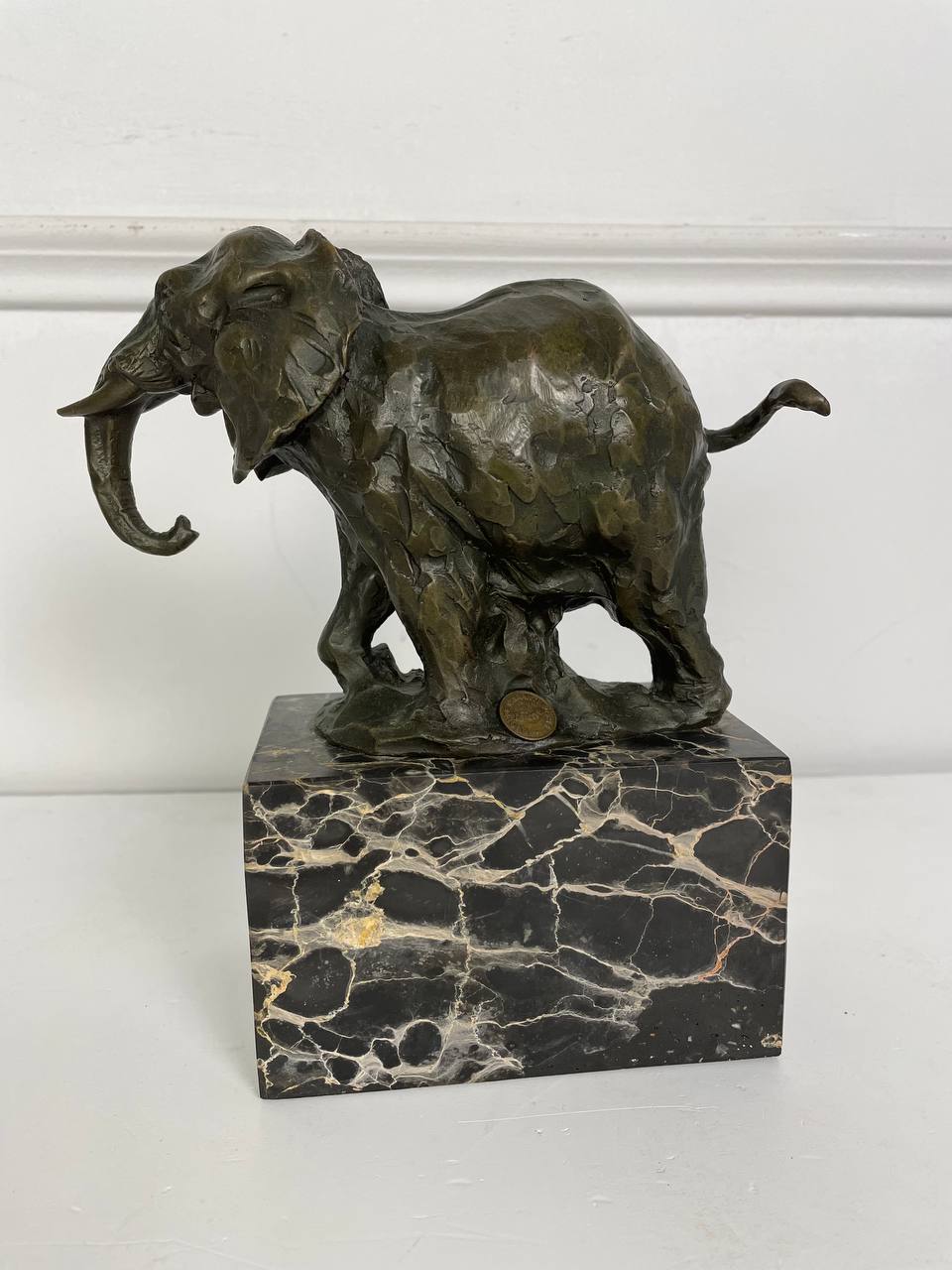 Антикварная скульптура «Слон» середины XX века, Франция. Выполнена из бронзы на мраморном основании. Стоит клеймо и подпись скульптора. Размер 20х8х21h см.
