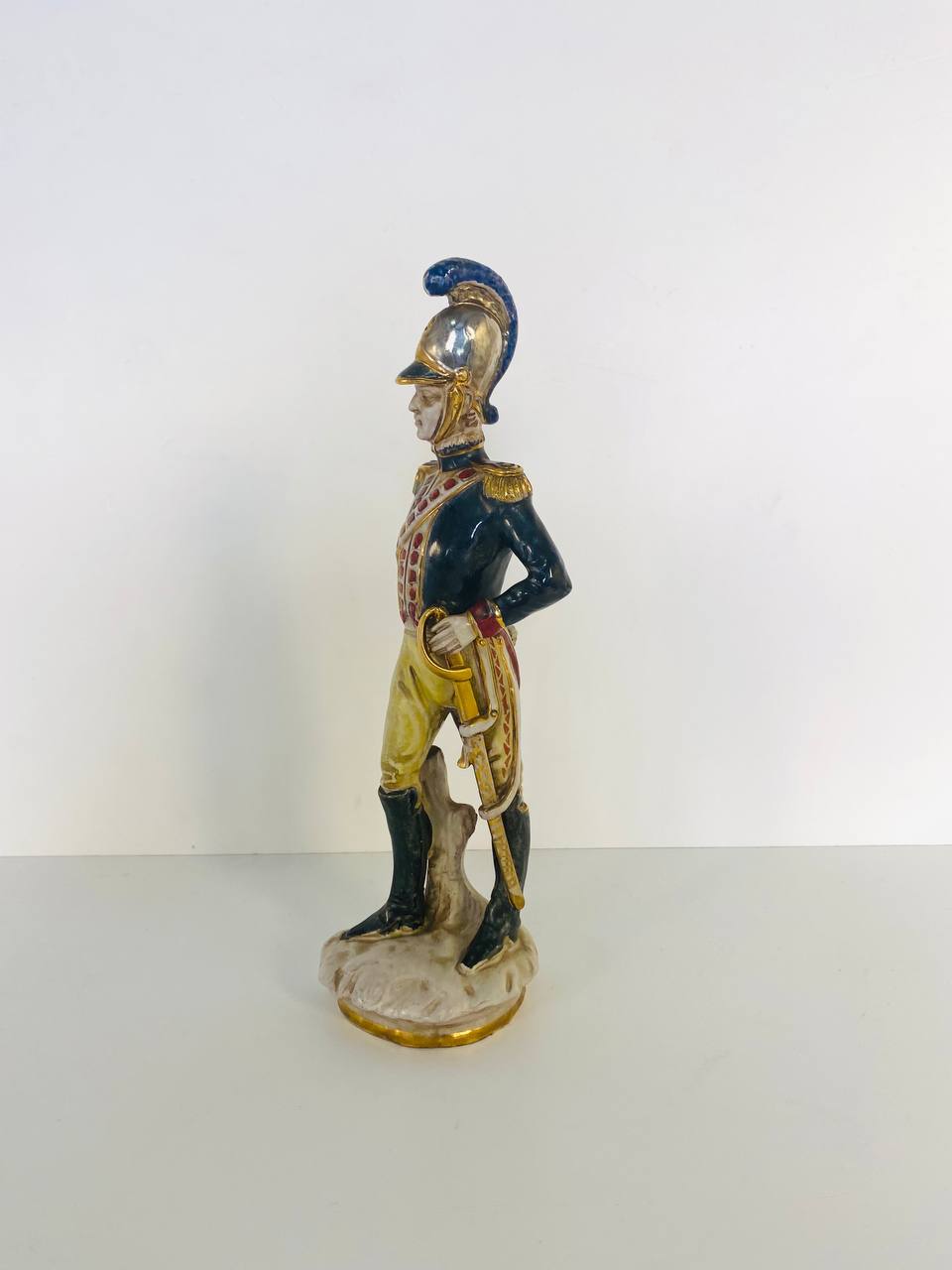 Антикварная статуэтка "Королевский гвардеец", первая половина ХХ века, Италия. Фарфор, ручная роспись, позолота. Capodimonte? Высота: 32 см.
