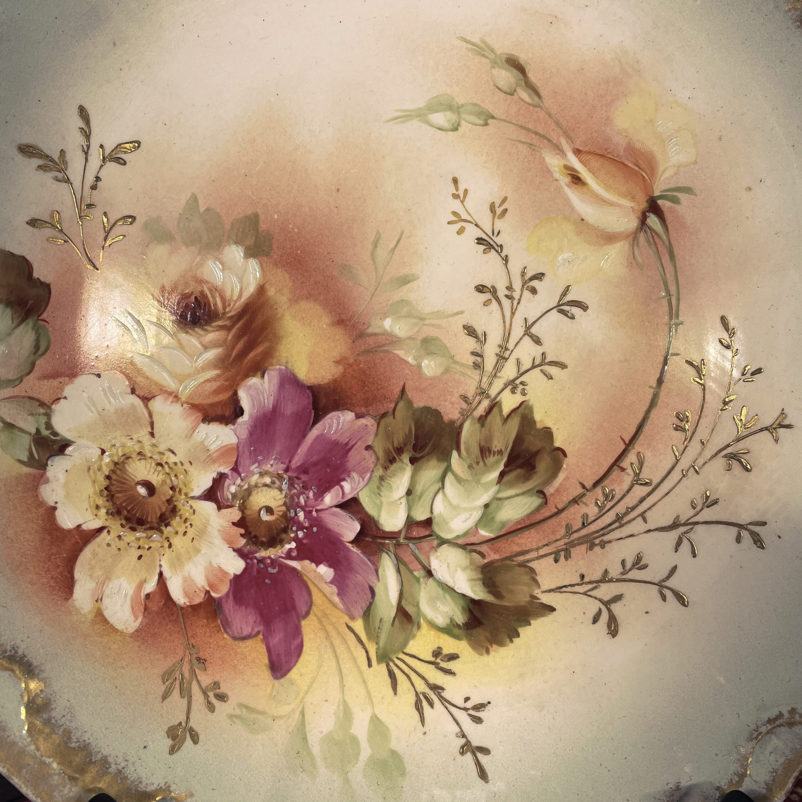 Декоративная антикварная тарелочка рубежа XIX-начала XX века, Германия. Выполнена из фаянса, расписана и позолочена вручную. Диаметр 25,5 см.