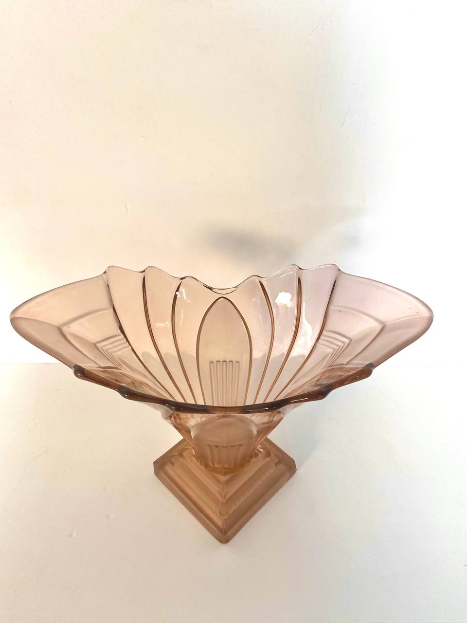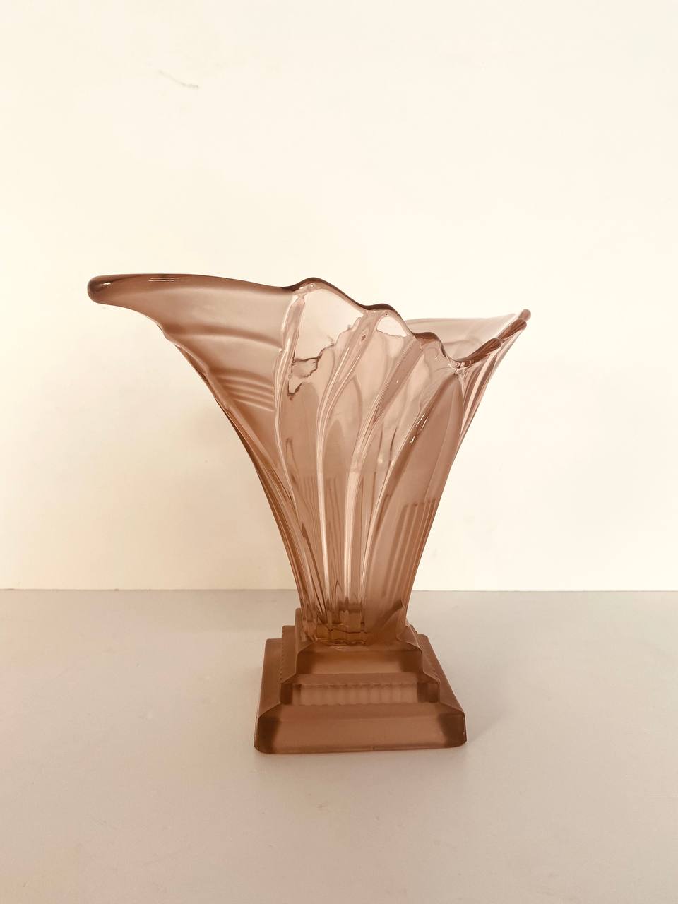 Антикварная ваза "Грета" в стиле Ар Деко Walter en Sohne 1930 е гг, Германия. Выполнена из розового стекла. Размер 31х15х23h см.
