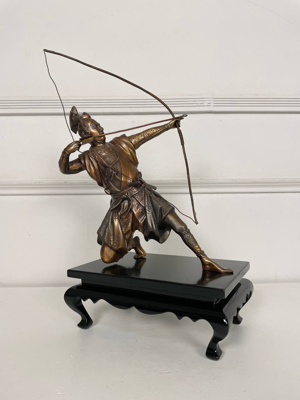 Антикварная скульптура «Лучник» на деревянном пьедестале XX век, Япония.