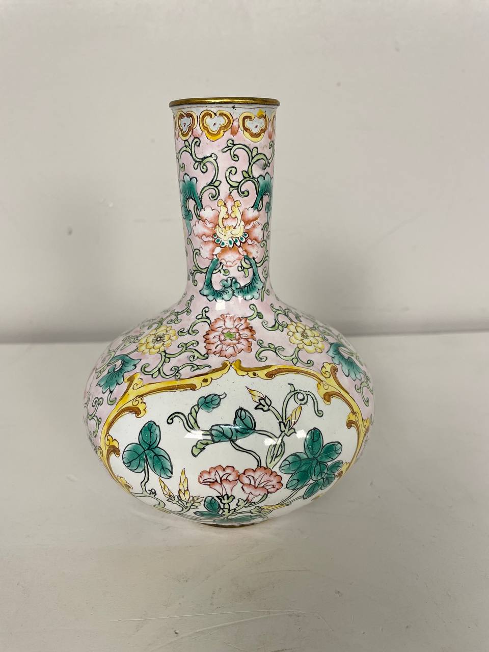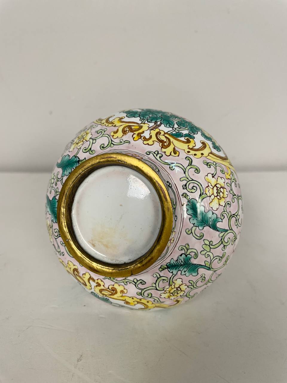 Выполнена из фарфора, цветной эмали, латуни.