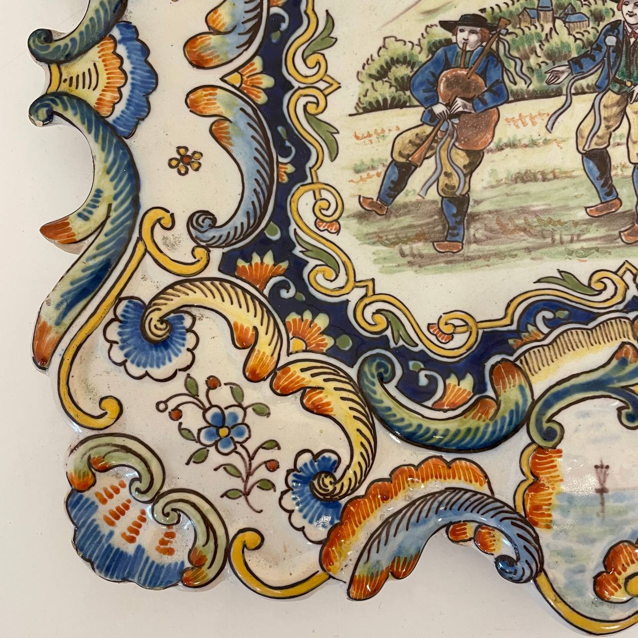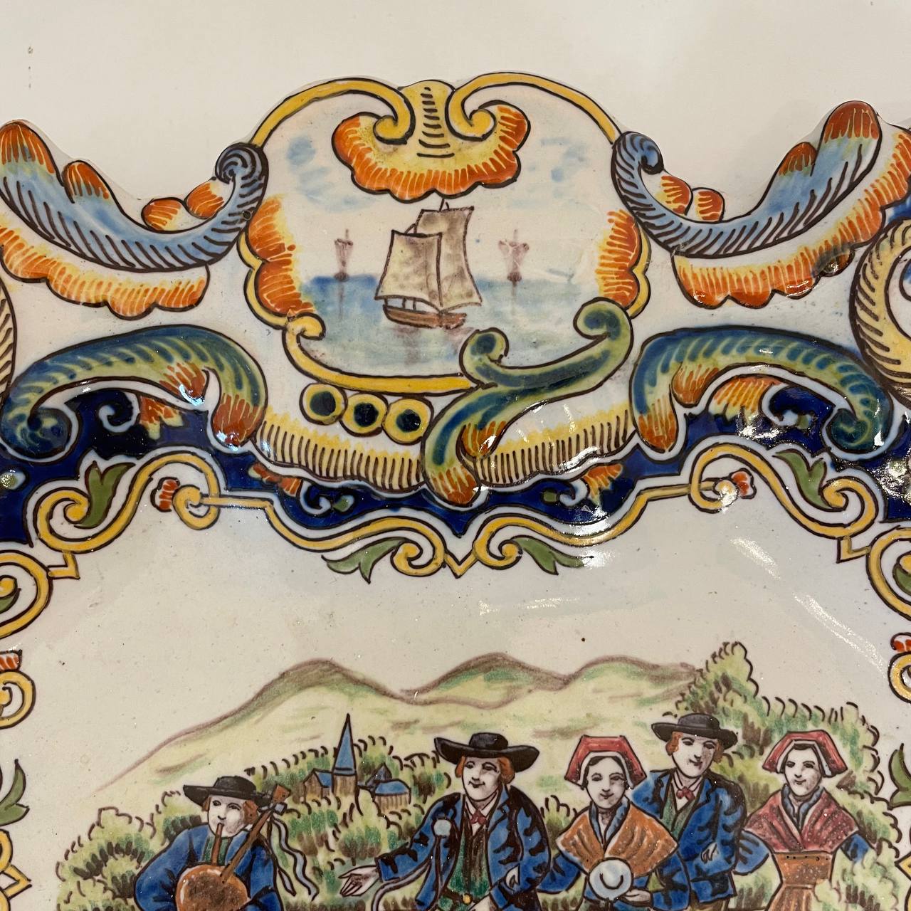 Антикварное фигурное блюдо XIX века, Руан, Франция. Фаянс, ручная роспись. Стоит подпись и маркировка. Размер 26х25 см.