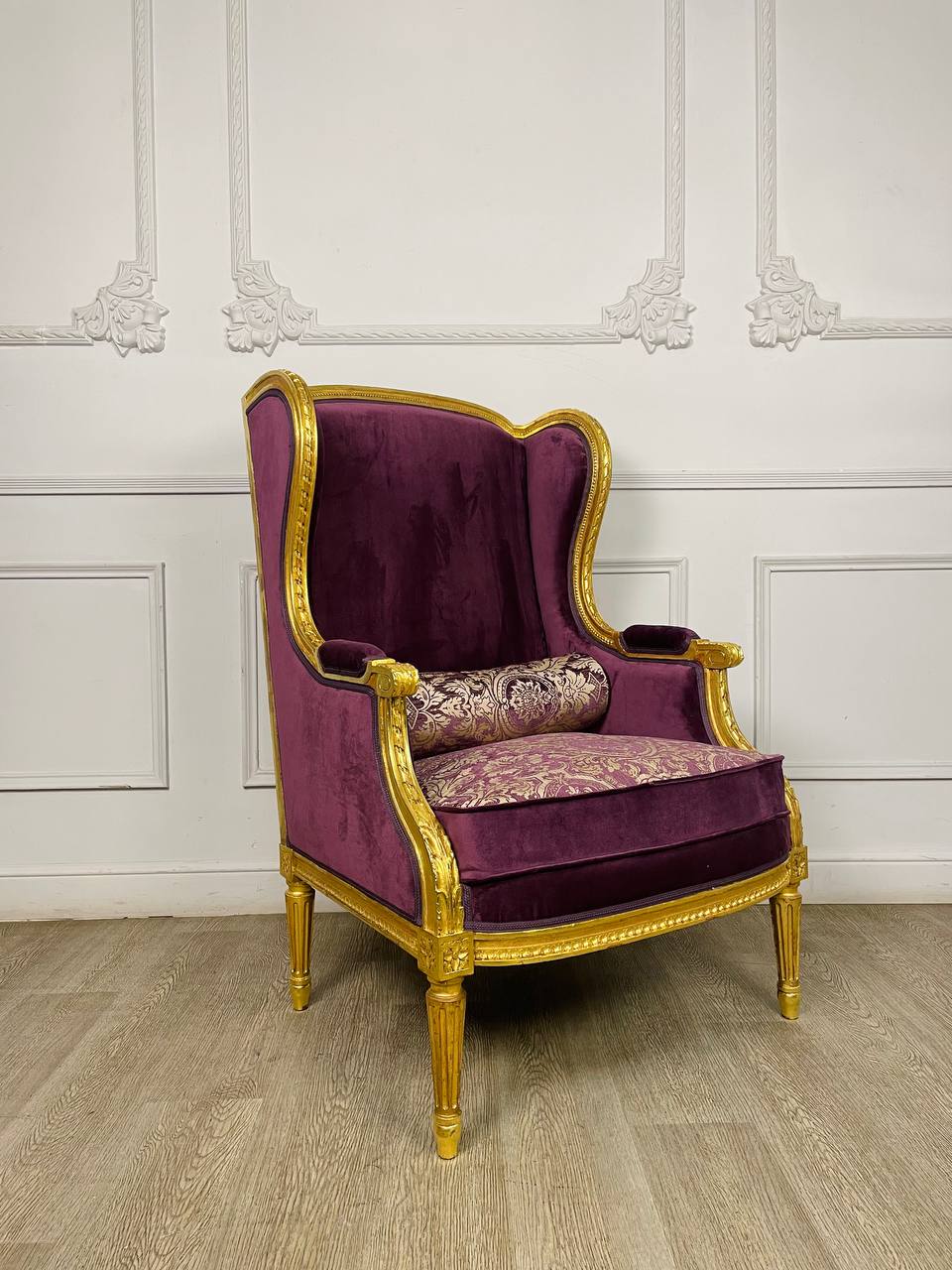 Обивка выполнена из фиолетового бархата и жаккарда.