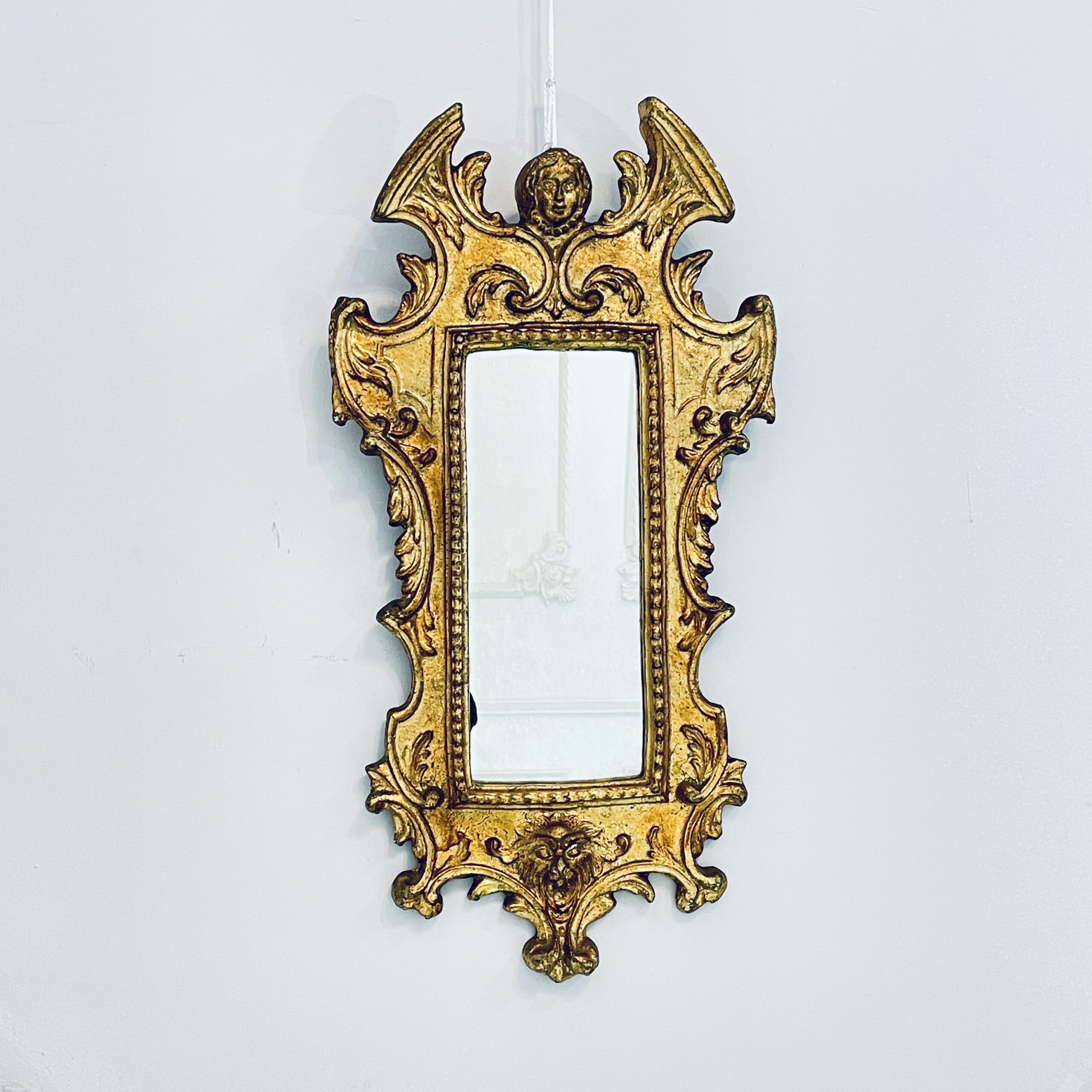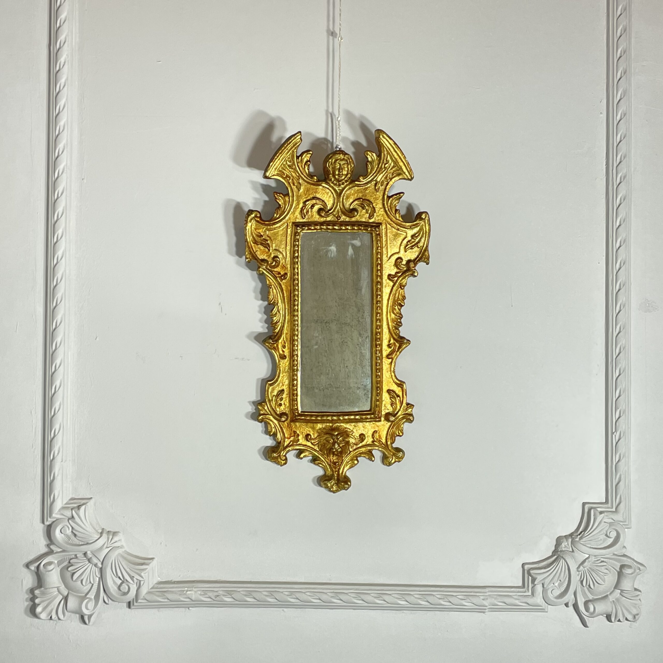 Антикварное небольшое зеркало начала ХХ века из Франции. Выполнено из дерева и позолотой. Размеры: 32х64h см.
