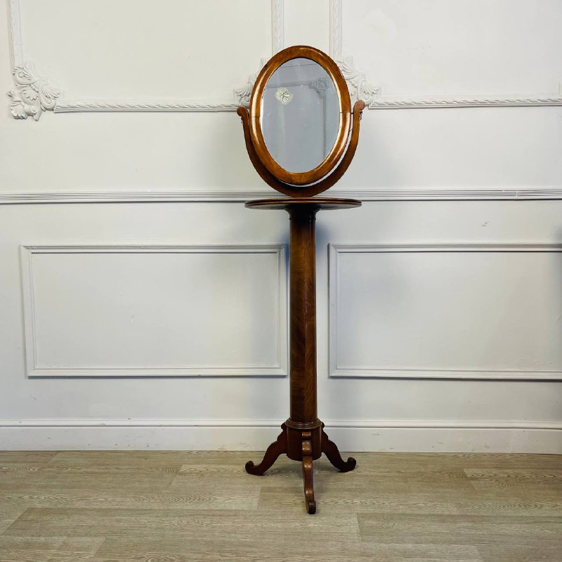 Зеркало-псише из красного дерева, ХIХ век, Франция. Высота: 145 см. Диаметр столика: 38 см.