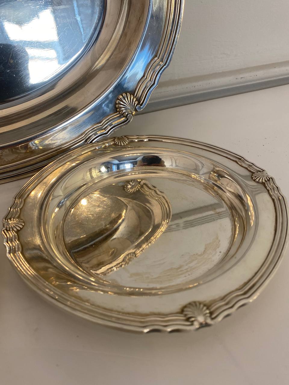 Набор из 3х антикварных блюд Gallia, Франция. Серебрение, маркировка. Размер большого блюда 32х24 см Размер малых блюд 16х16 см. Цена за комплект.
