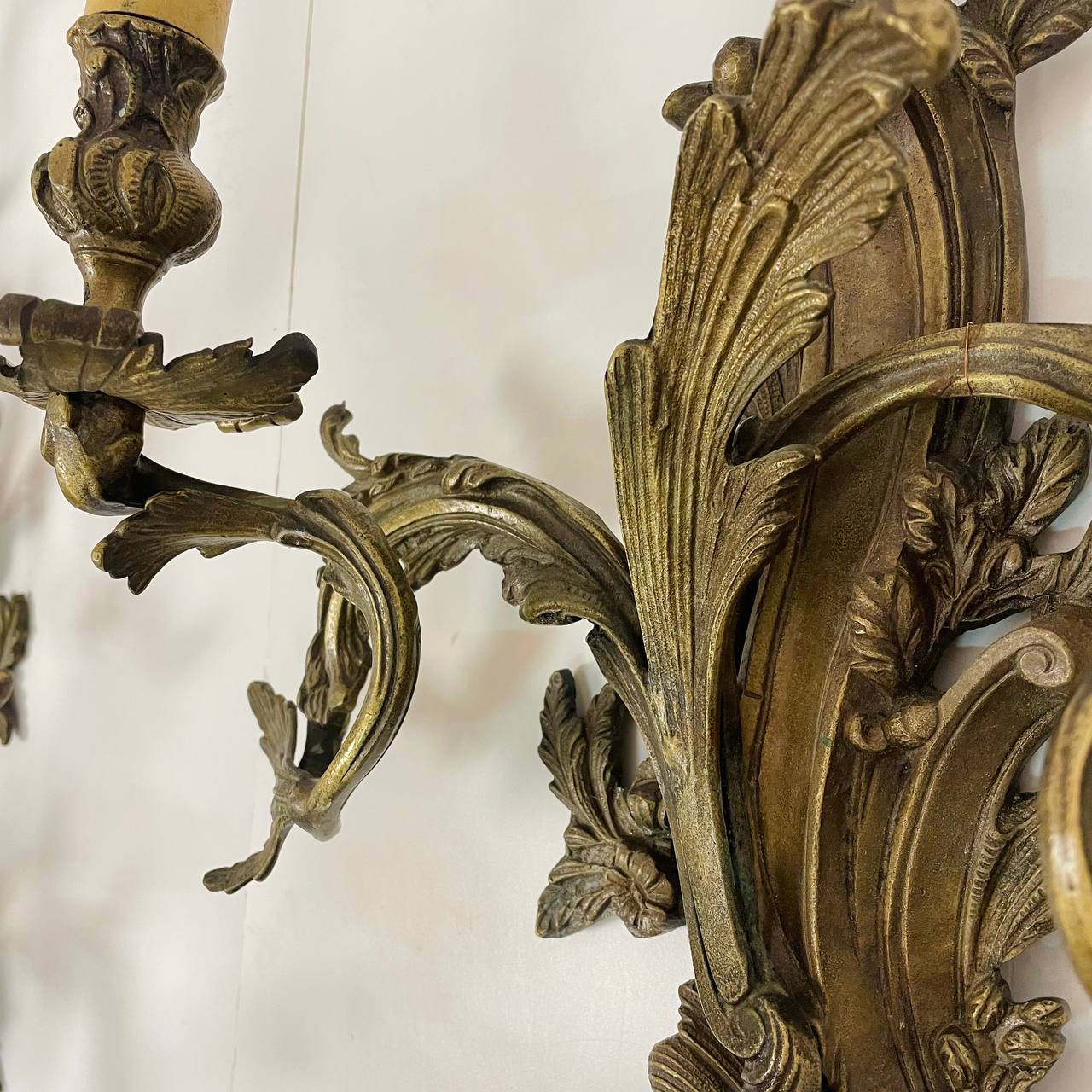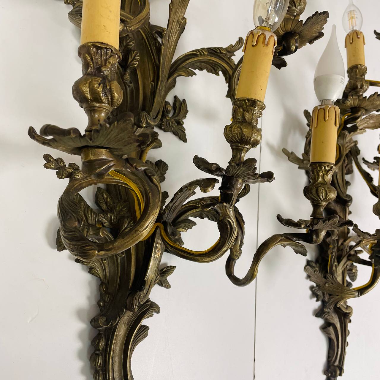Антикварные парные бра, рубеж ХIХ-ХХ века, Франция. Бронза. Каждое на 6 светоточек. Размер: 40х21х98h см.