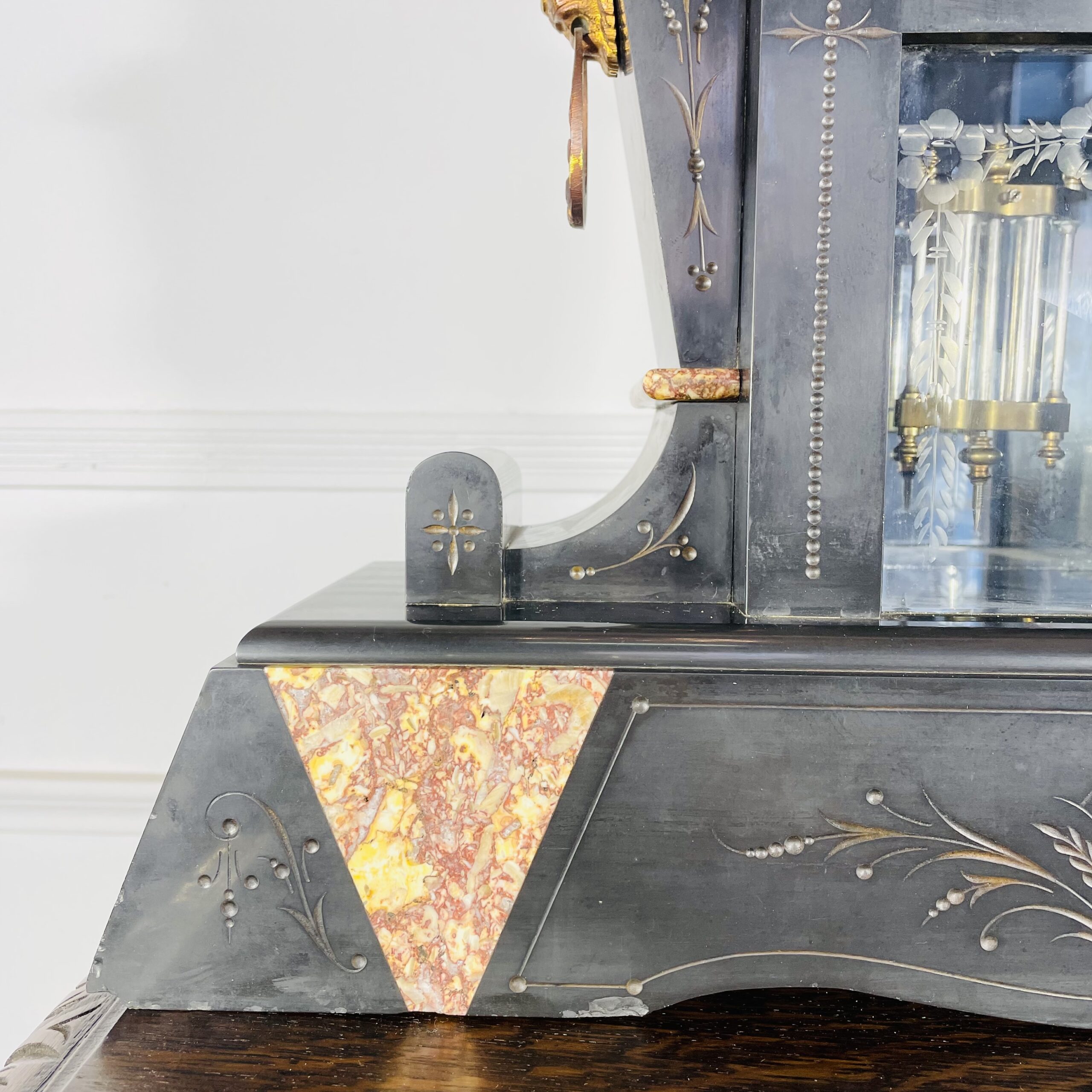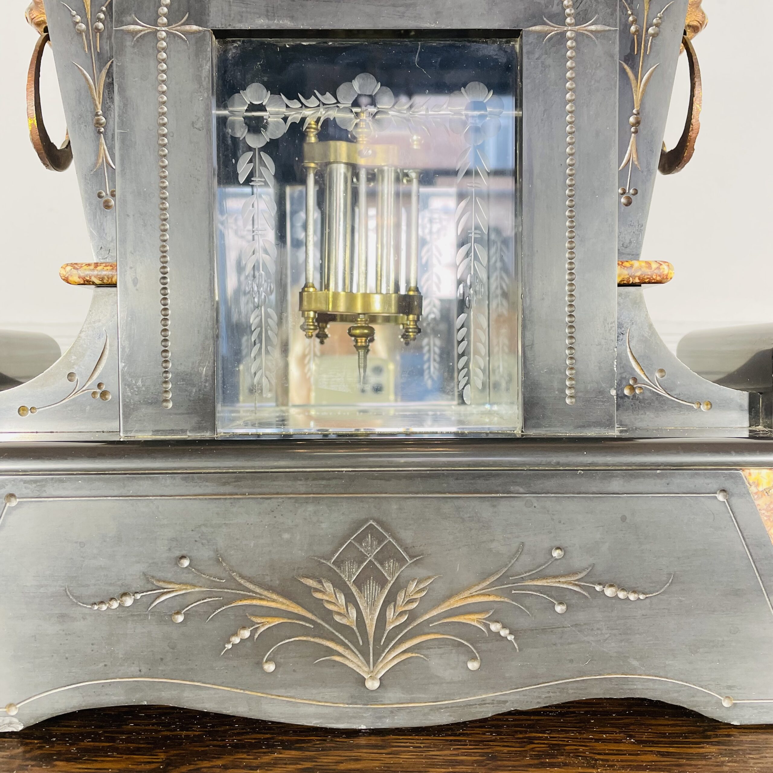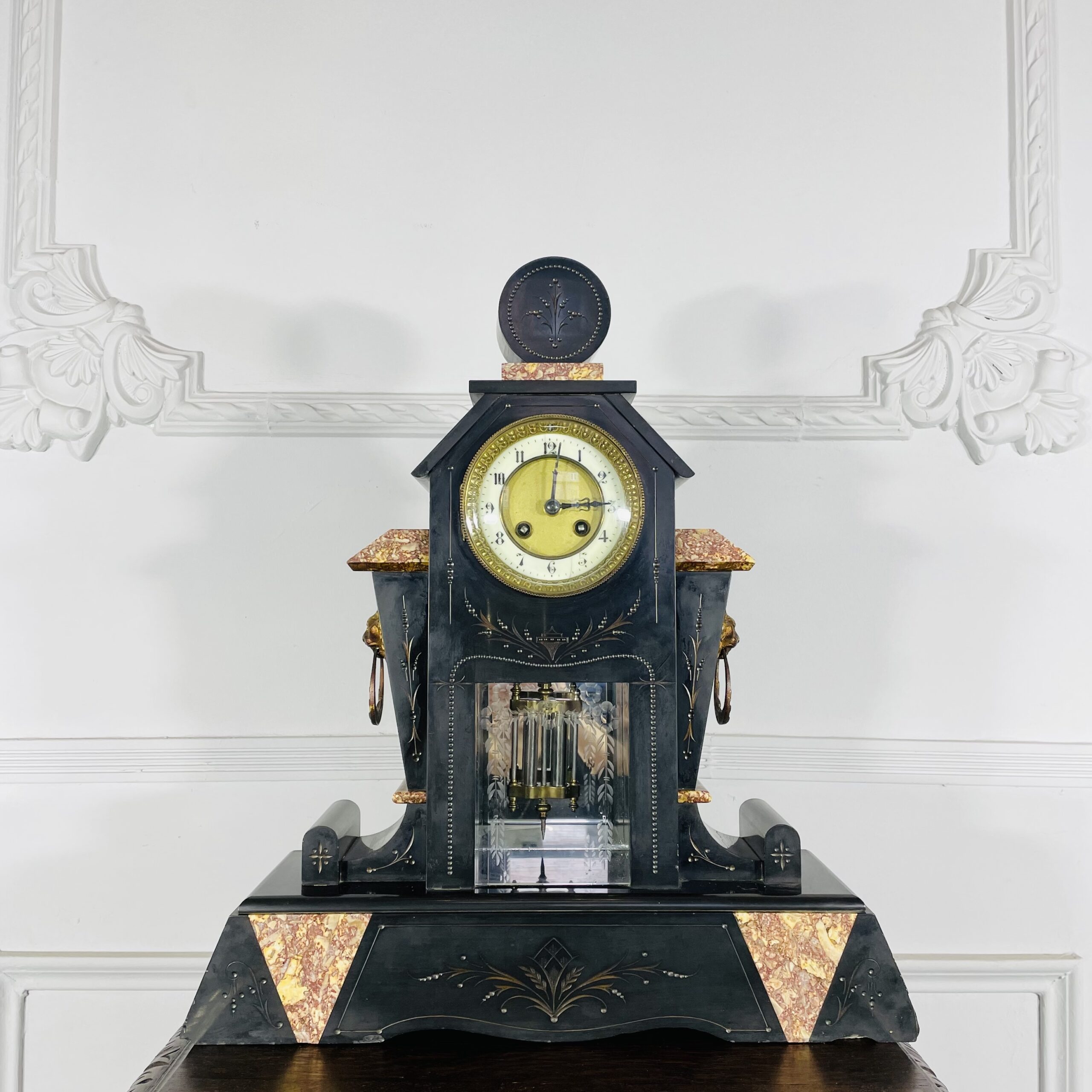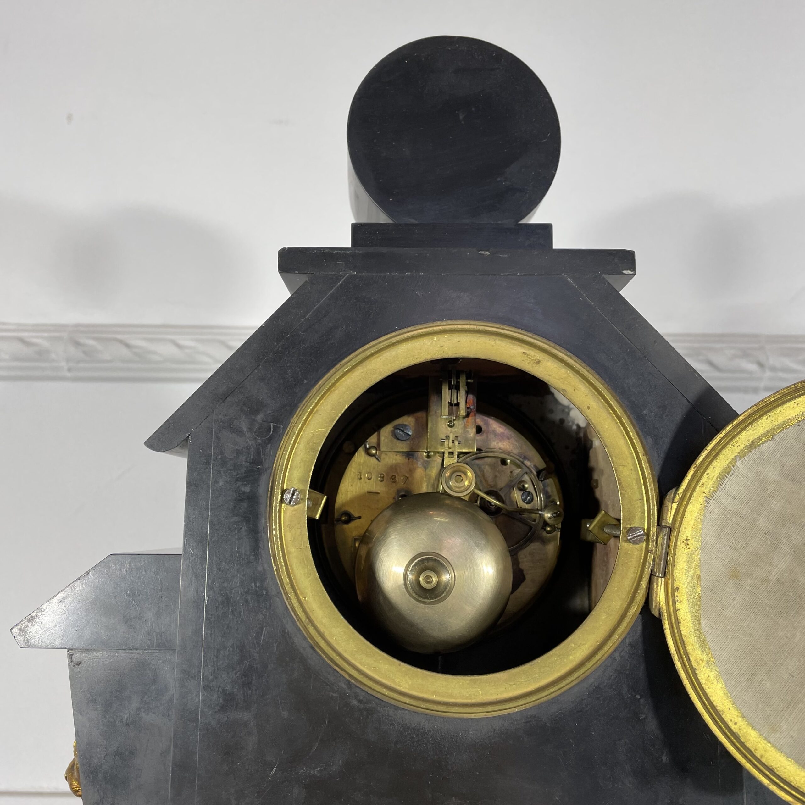 Антикварные часы в стиле Ар Деко De Royal Pasis Bargration, 1907 год. № 10867, мраморный корпус, новый пендельфедер. Завод 10-дневный, бой каждые полчаса. Высота 45 см.