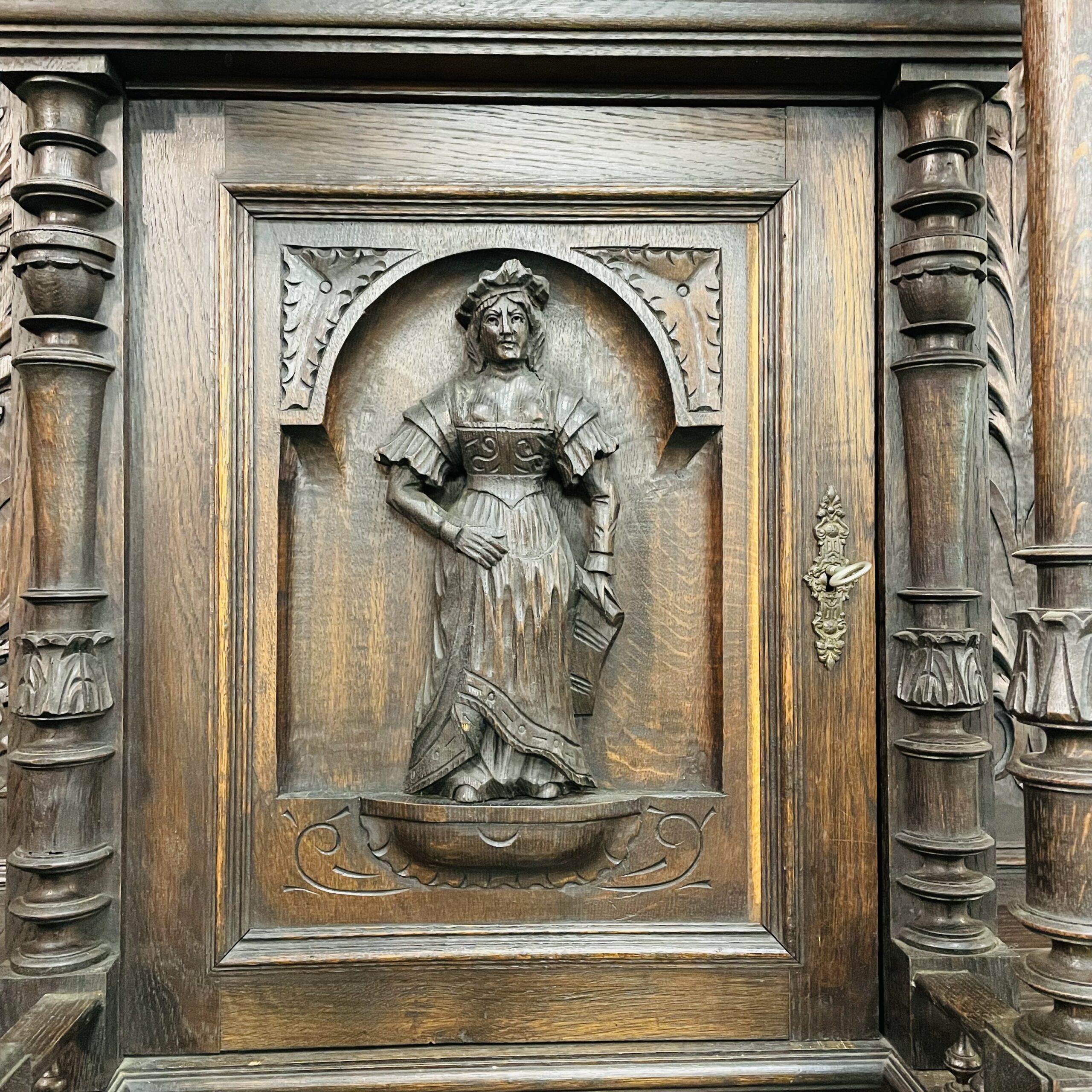 Пара антикварных резных буфетов XIX века (1870-1890) в стиле ренессанс, Франция. Массив дуба, ручная резьба. Размер одного буфета: 240х130х60 см. Цена за пару.