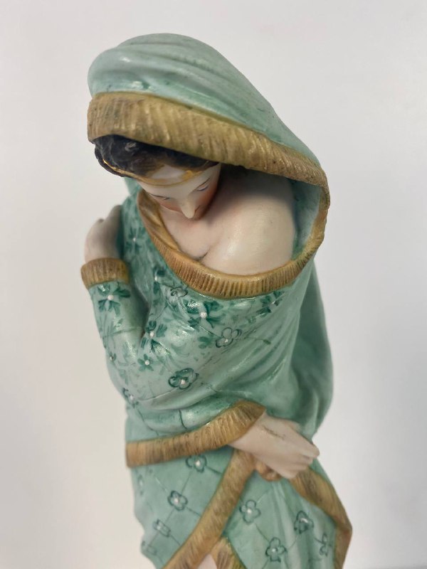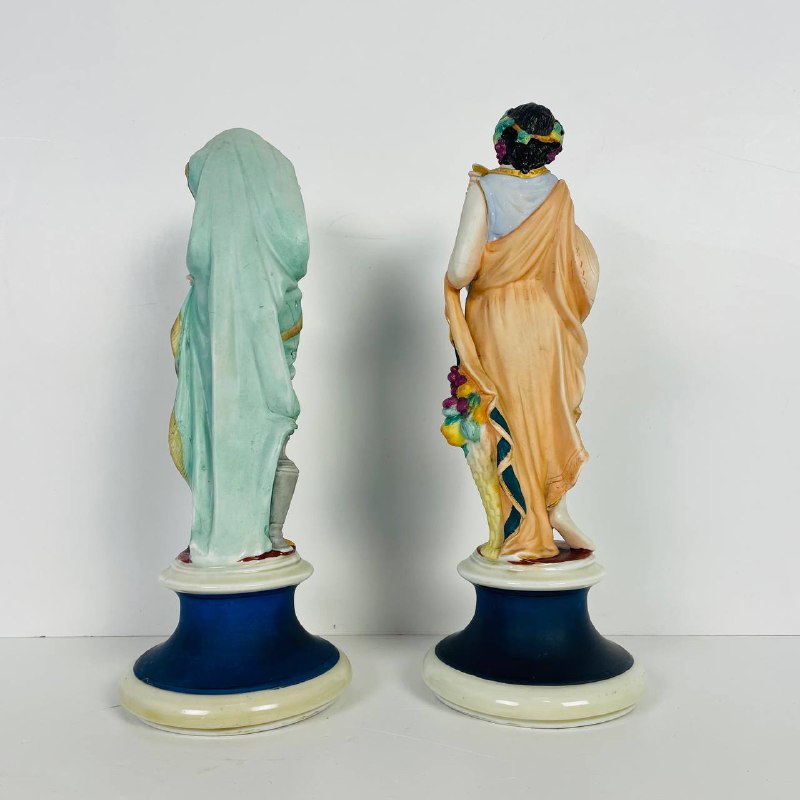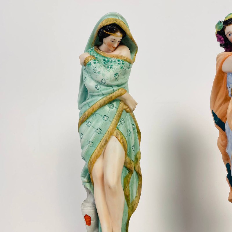 Пара статуэток из фарфора в античном стиле, начало ХХ века. Предположительно, Германия. Размеры: 11х11х29h см. Цена за пару.