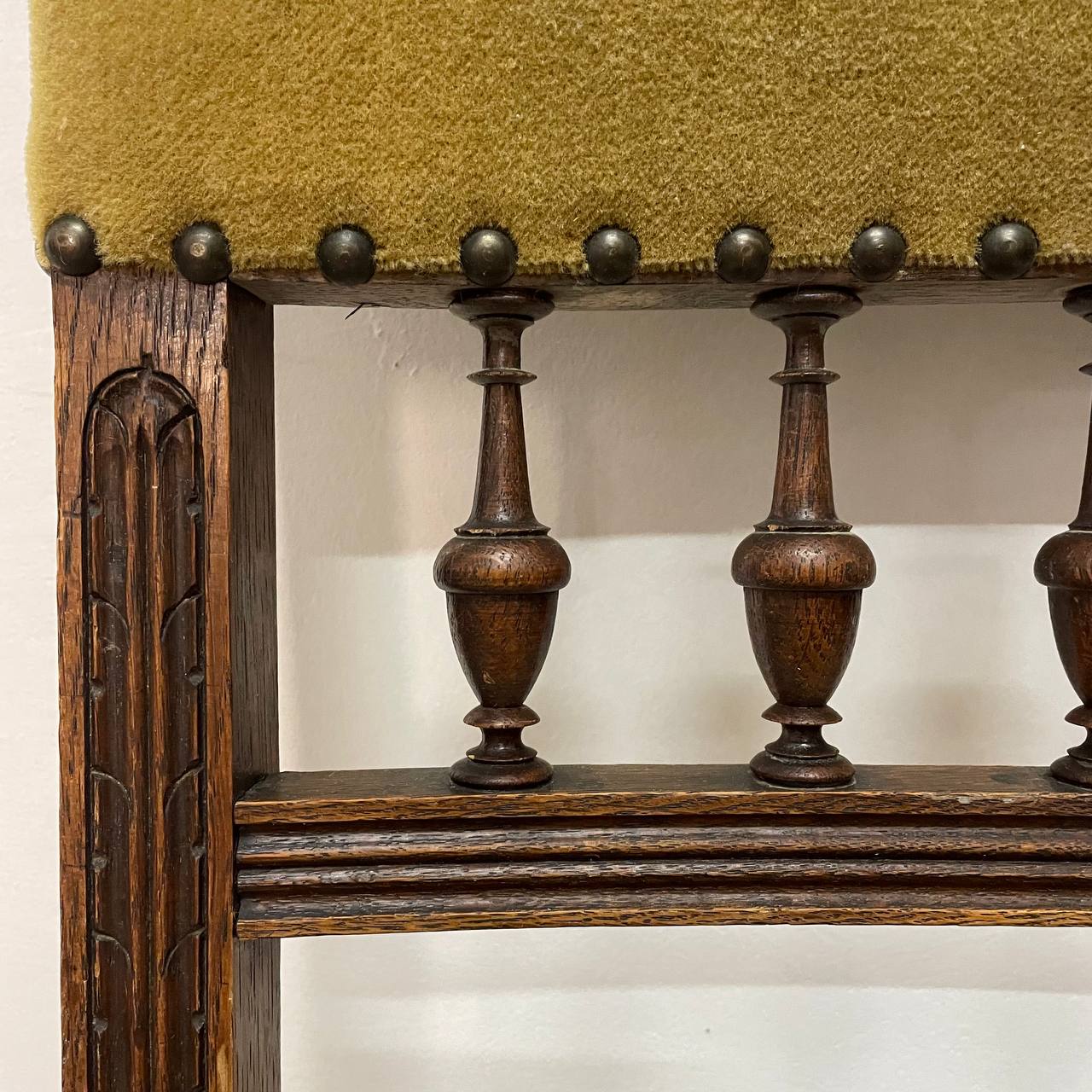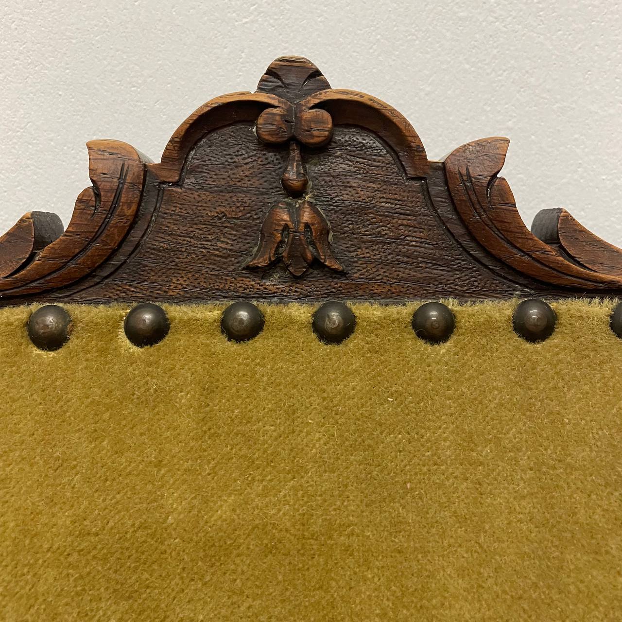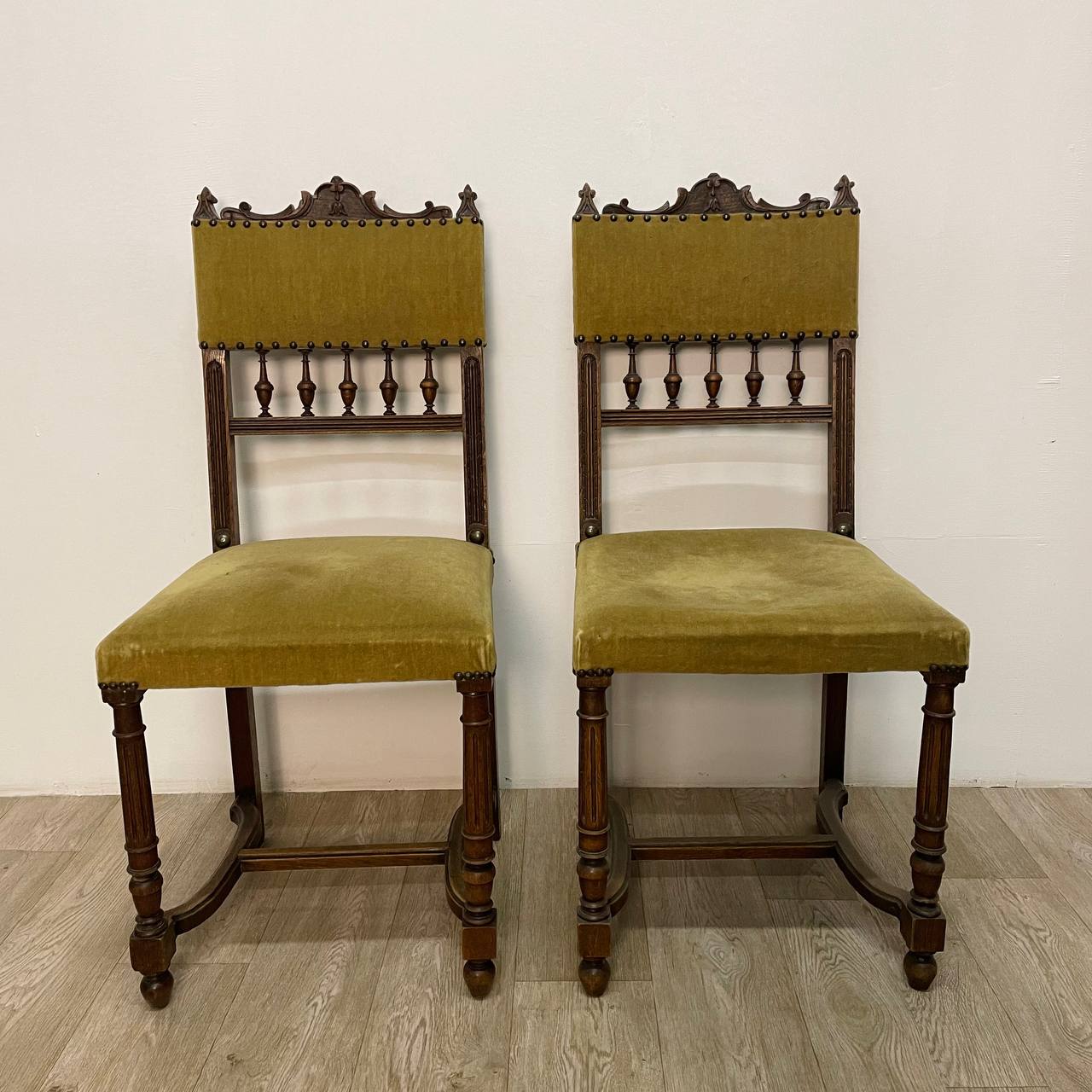 Антикварные стулья рубежа XIX-XX вв, Бельгия. Выполнены из массива дуба. Резьба ручной работы в виде геральдических лилий. В наличии 4 шт. Размер 42х41х95h см Цена за 1 шт.