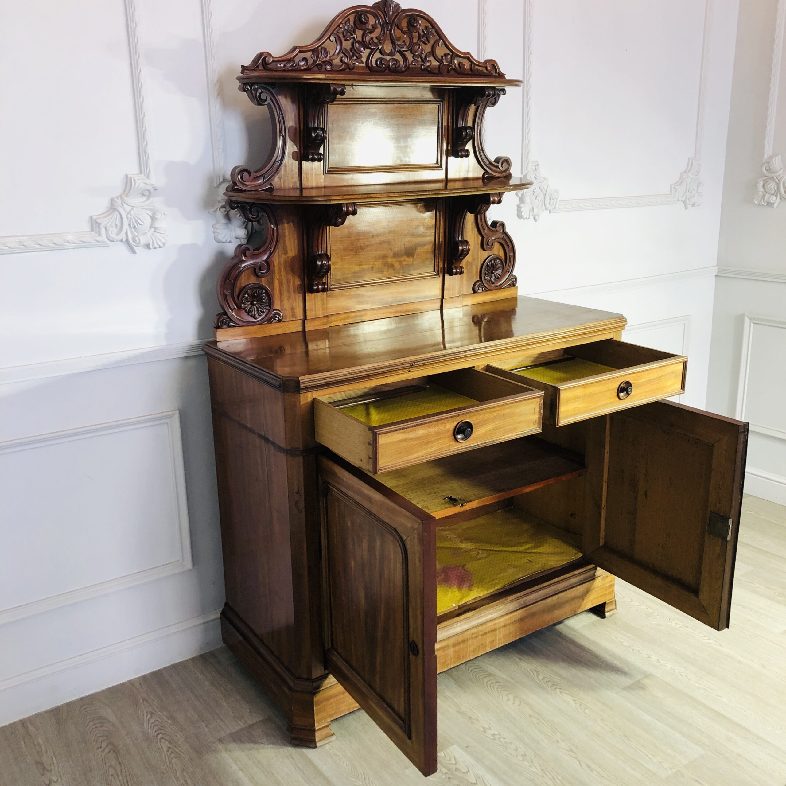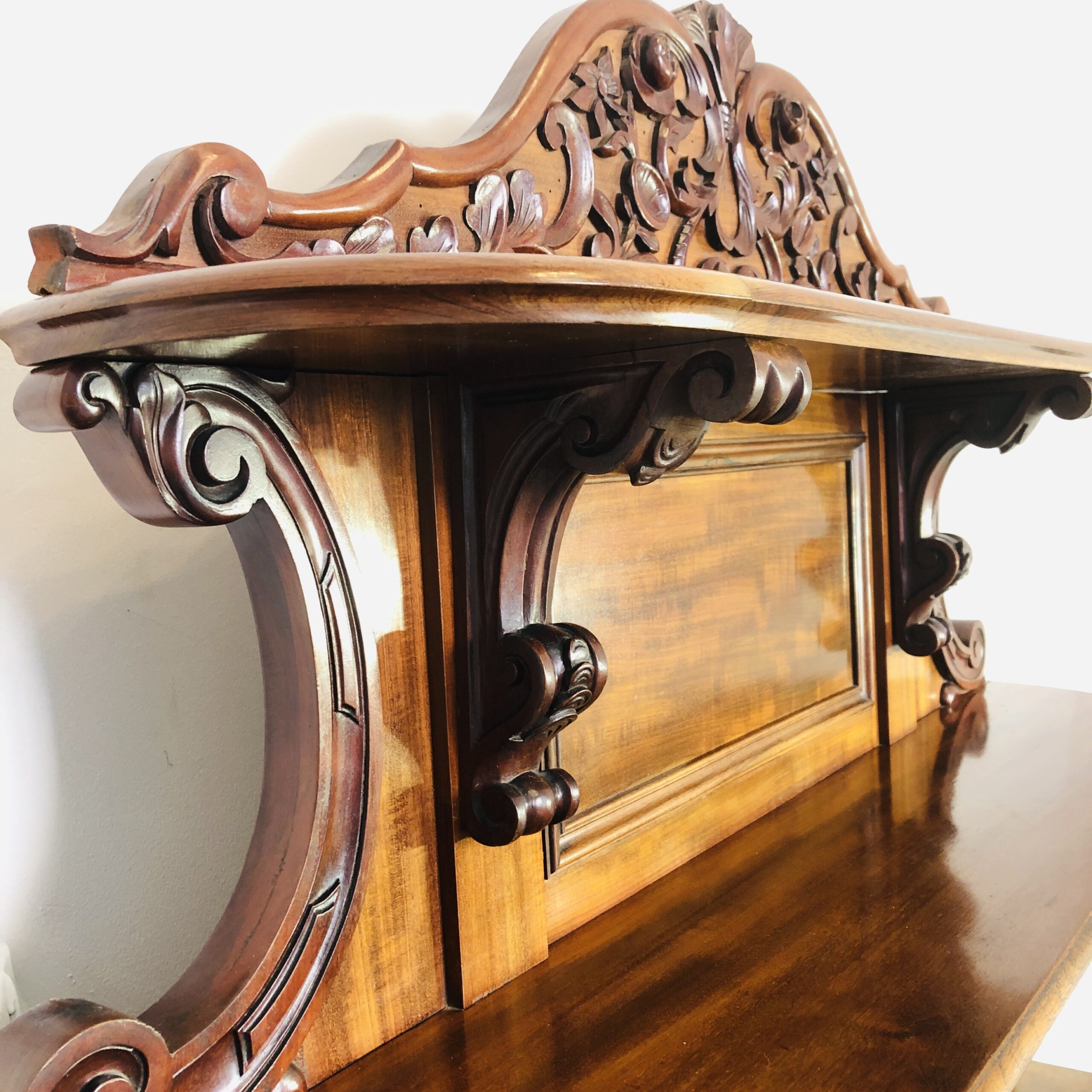 Антикварный буфет первой половины XX века из Франции. Выполнен из красного дерева, изящная ручная резьба. Размеры: 122х52х192h см.