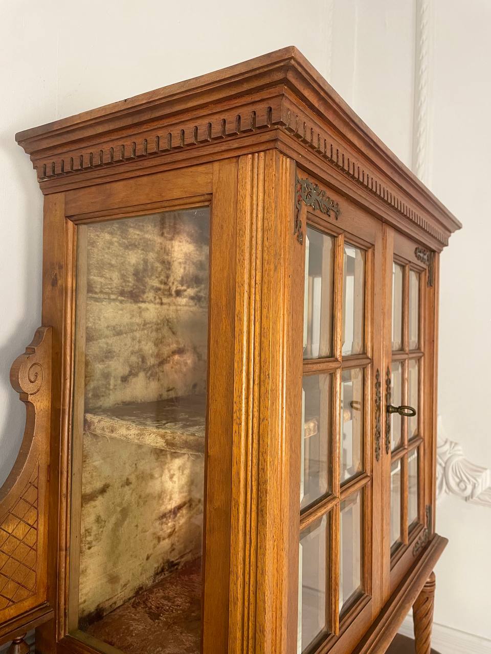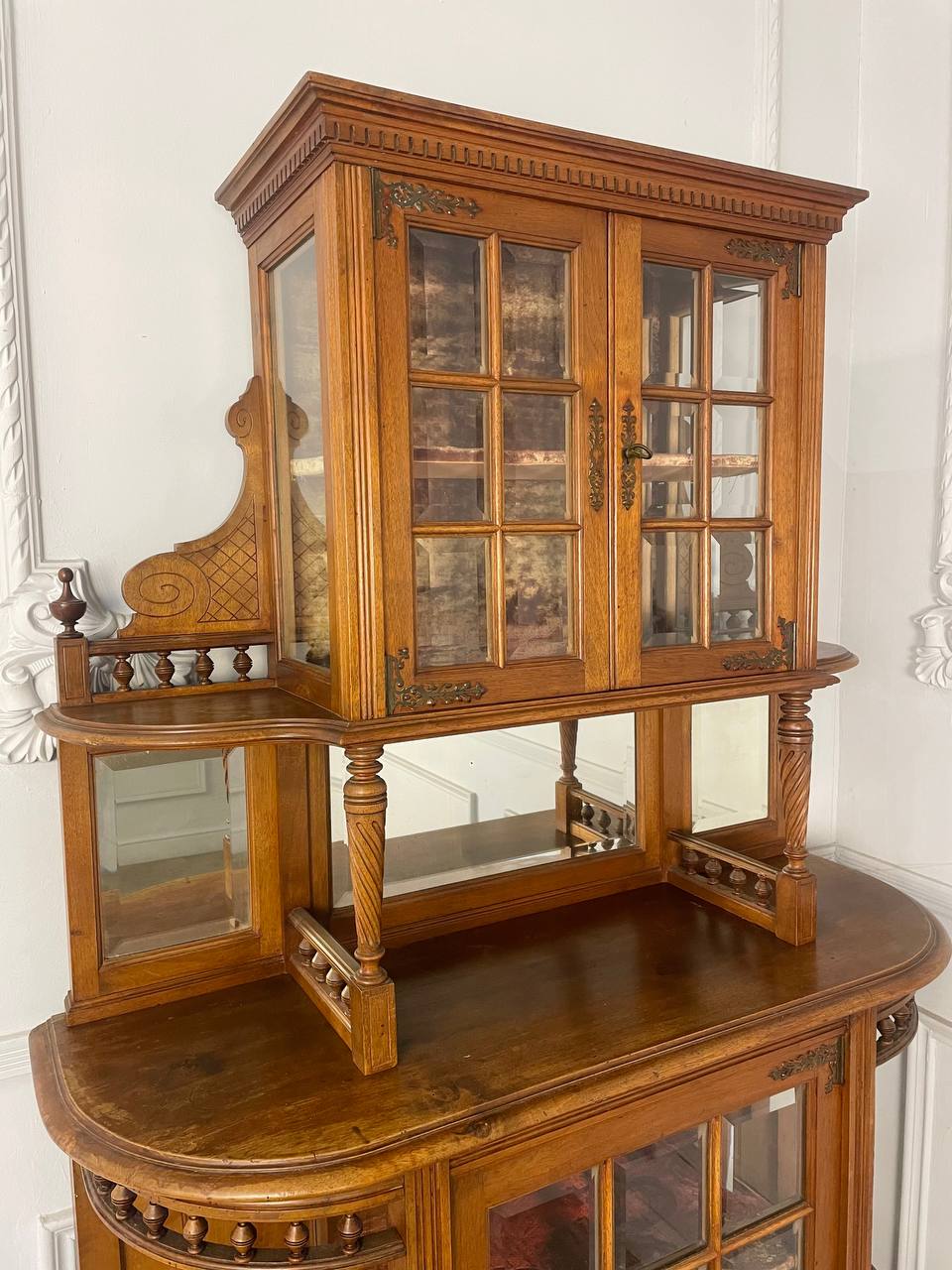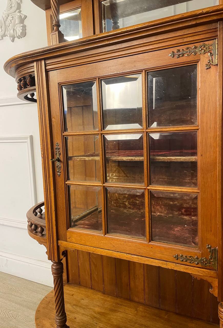 Антикварный буфет XIX века, Edm-d Rey, Марсель, Франция. Выполнен из массива ореха. Оригинальные стекла с фацетом. Оригинальная латунная фурнитура. Размер 101х37х183h см.