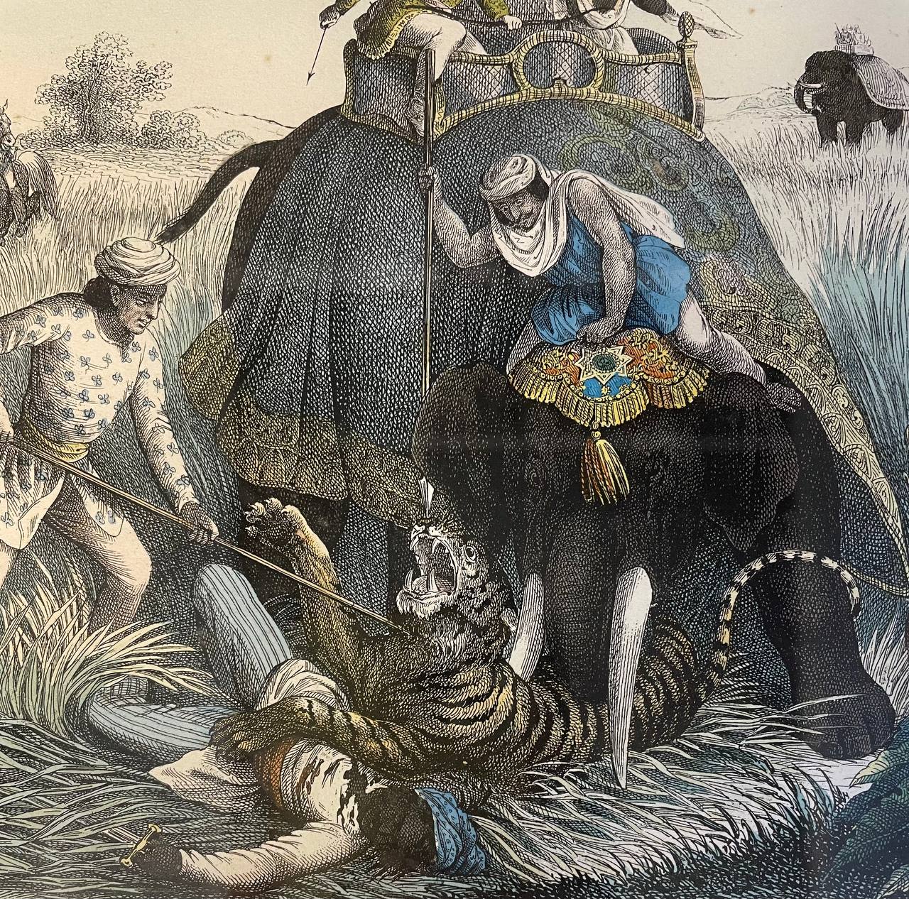 Антикварный эстамп "Охота на тигра"
