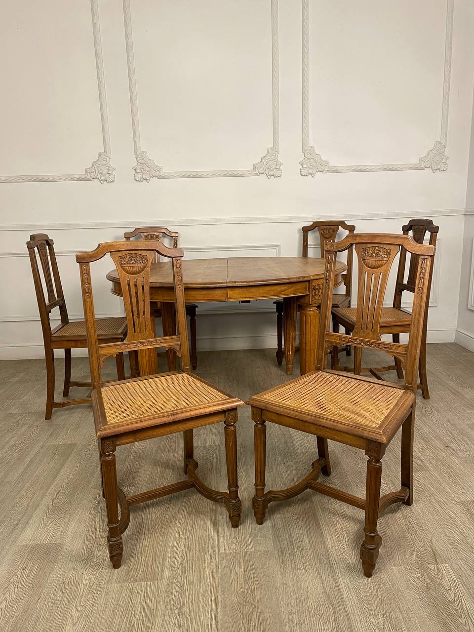Антикварный комплект стол и 6 стульев