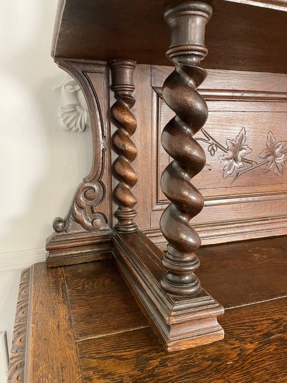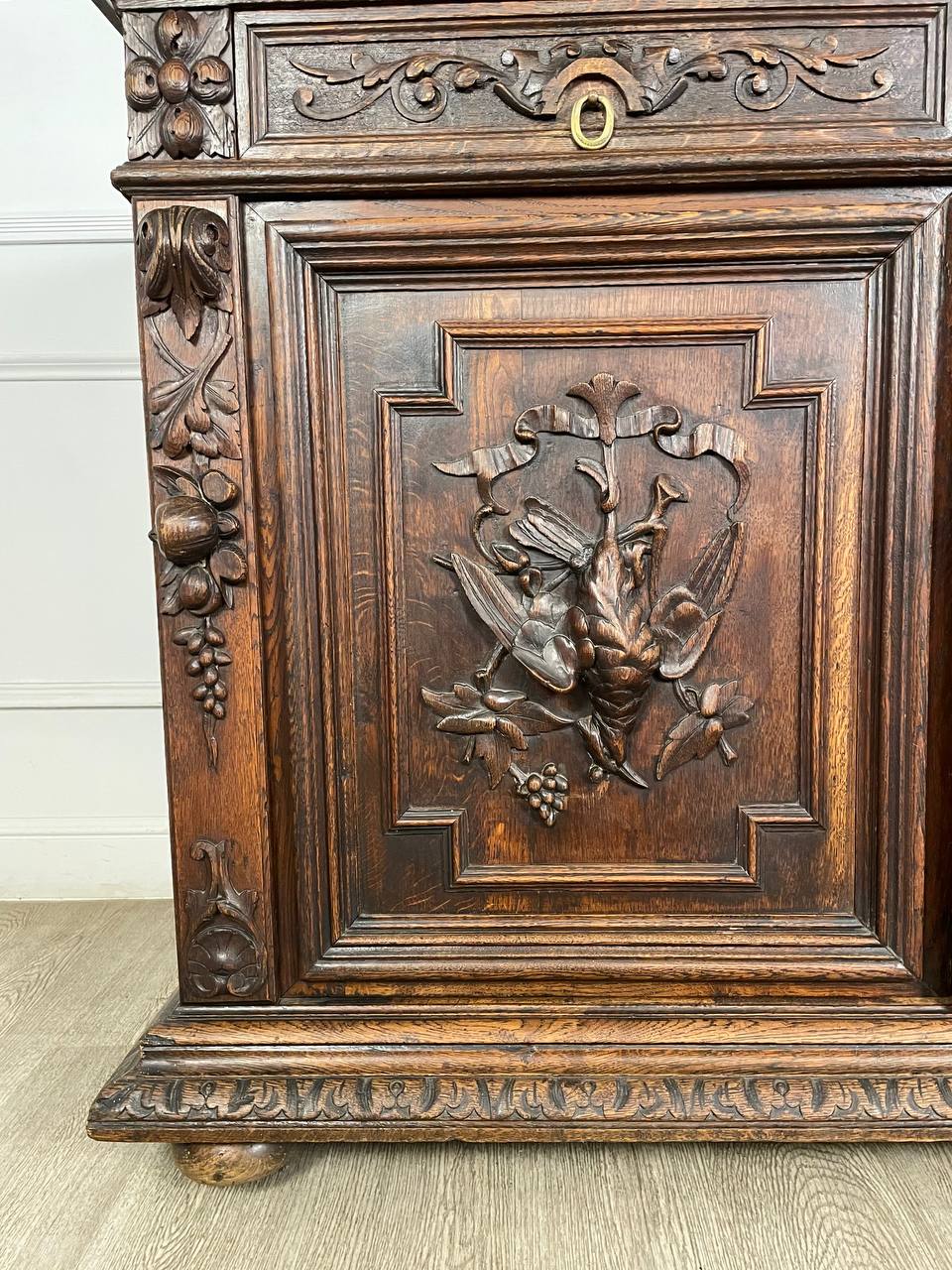 Антикварный поставец XIX века, Франция. Выполнен из массива дуба. Богатая резьба ручной работы. Размер 145х59х207h см.