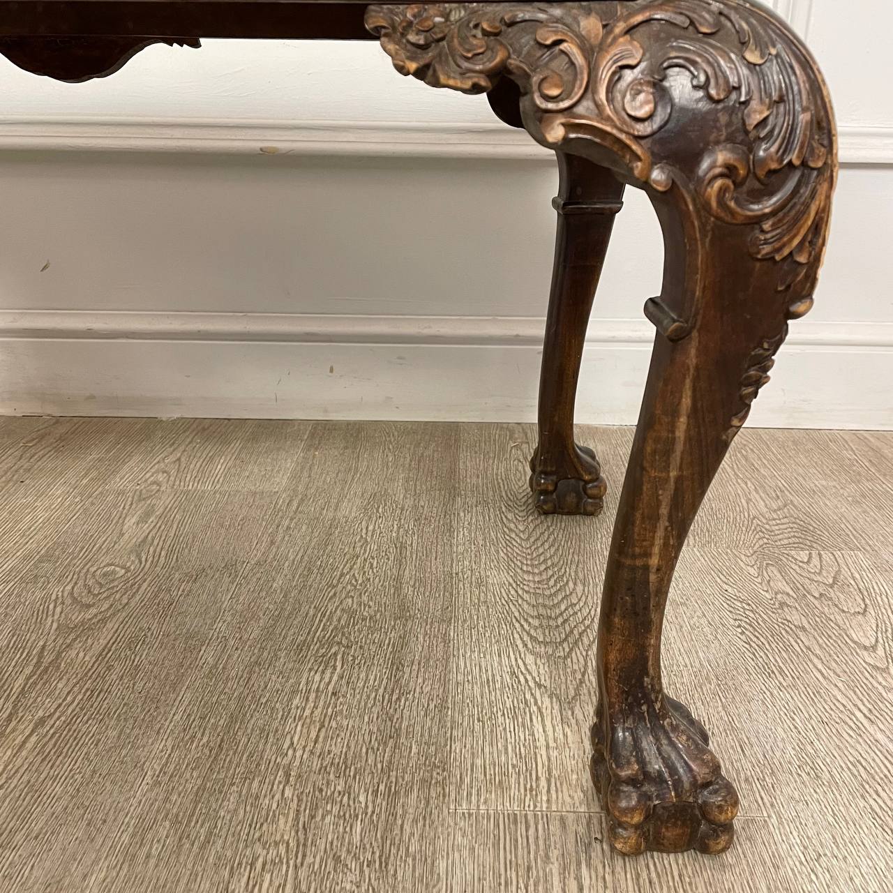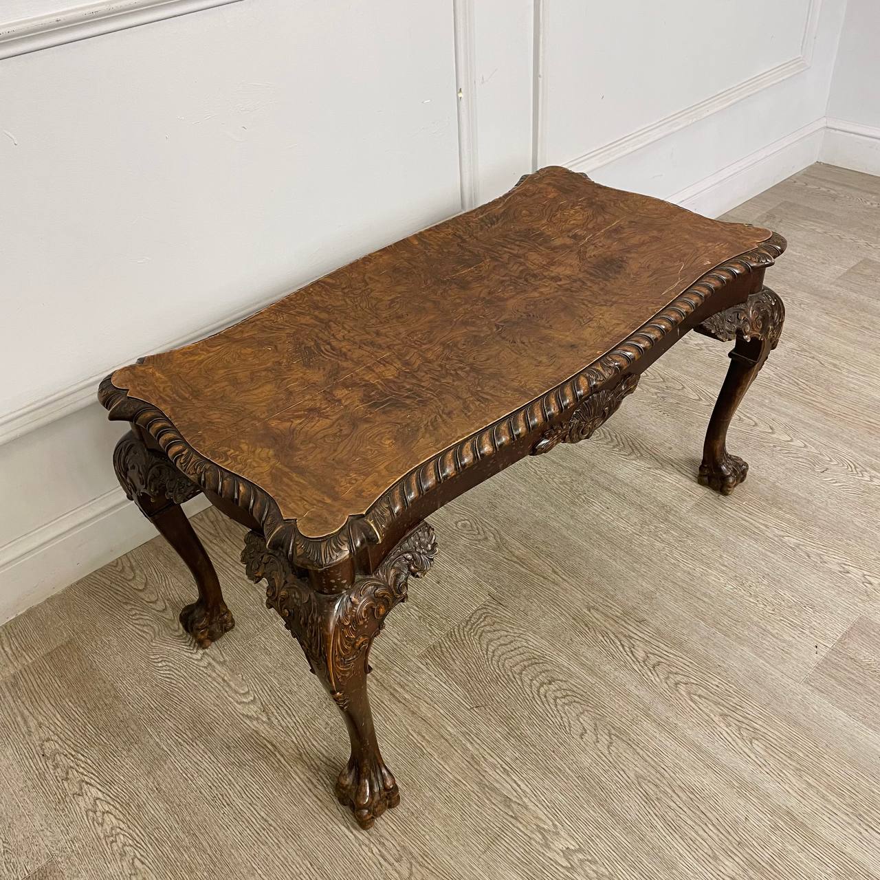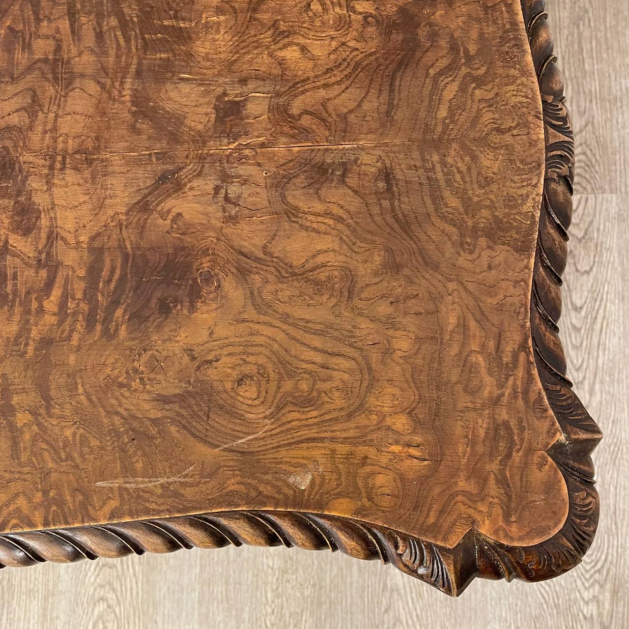 Антикварный журнальный столик в стиле Chippendale начала XX века, Бельгия. Выполнен из массива ореха. Фигурная столешница из корня ореха. Размер 86х45х47h см.