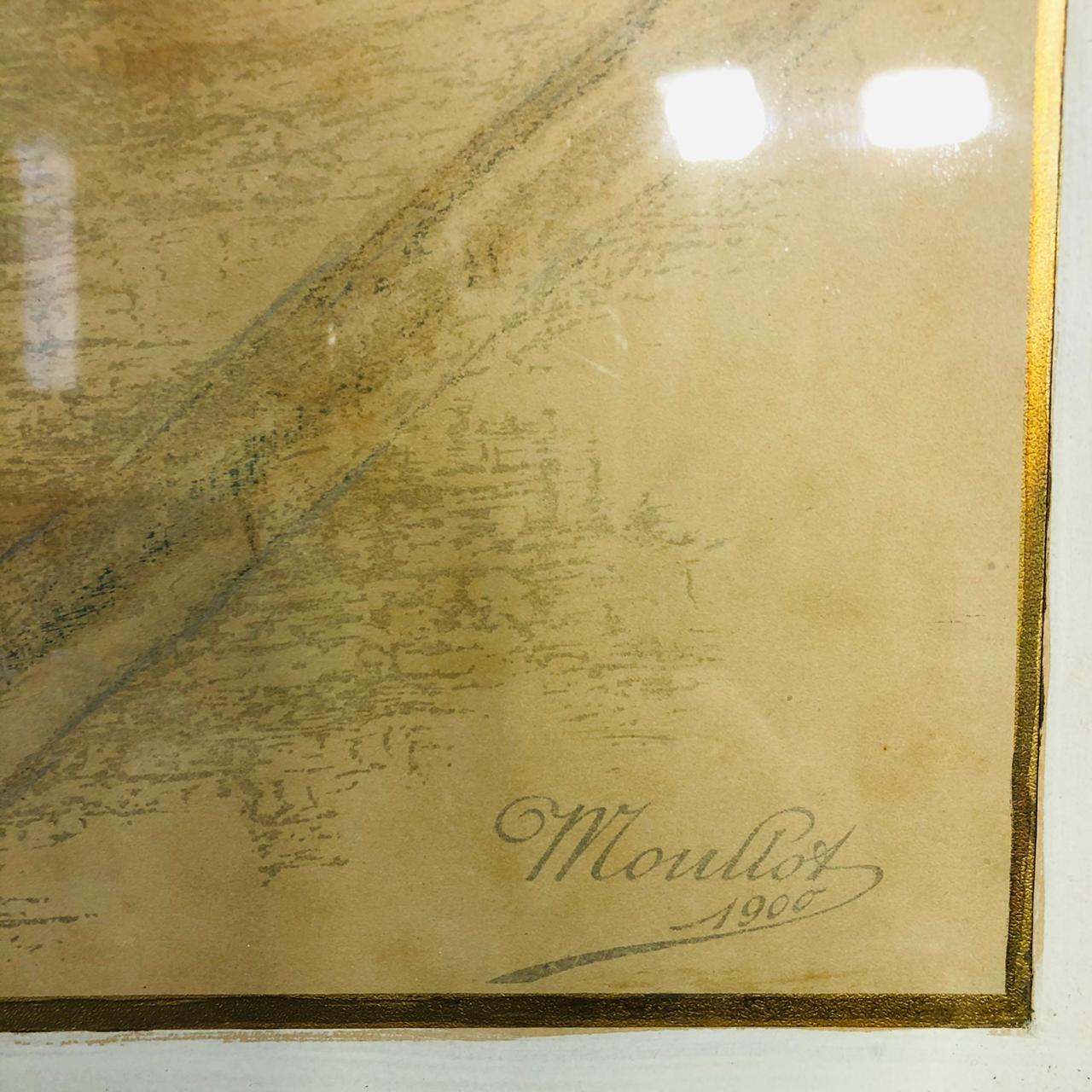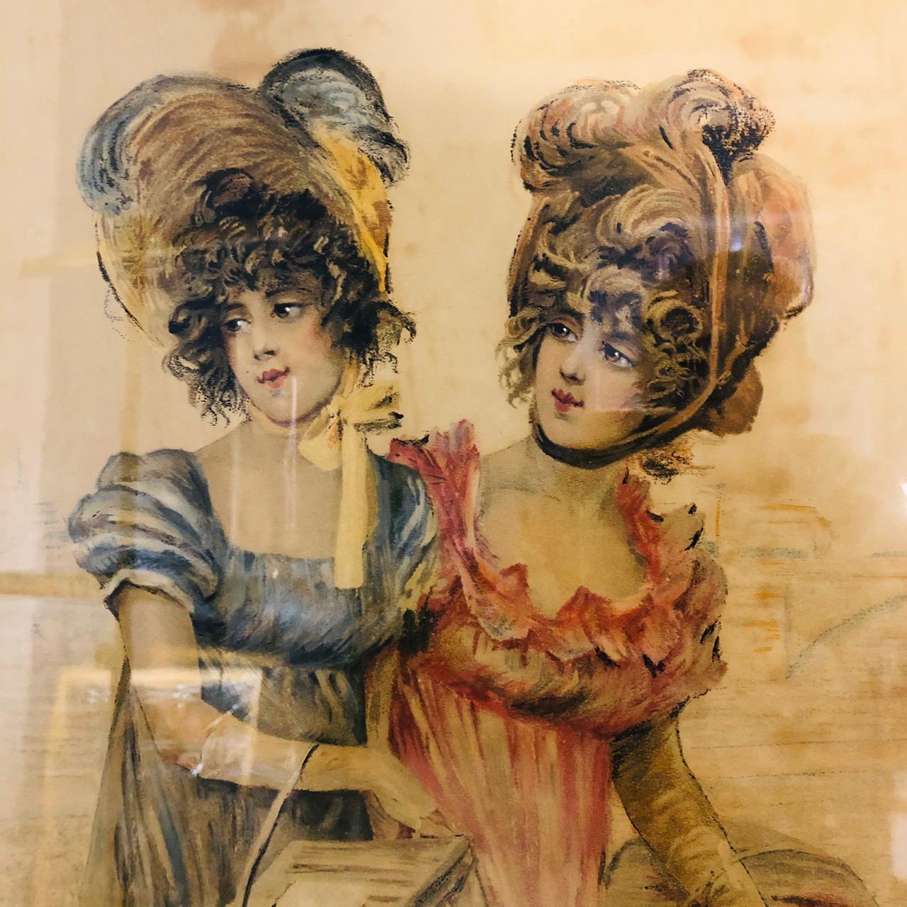 Большая антикварная работа "Барышни" Франция 1900 г. Гуашь, подпись автора. Размер 59х93h.