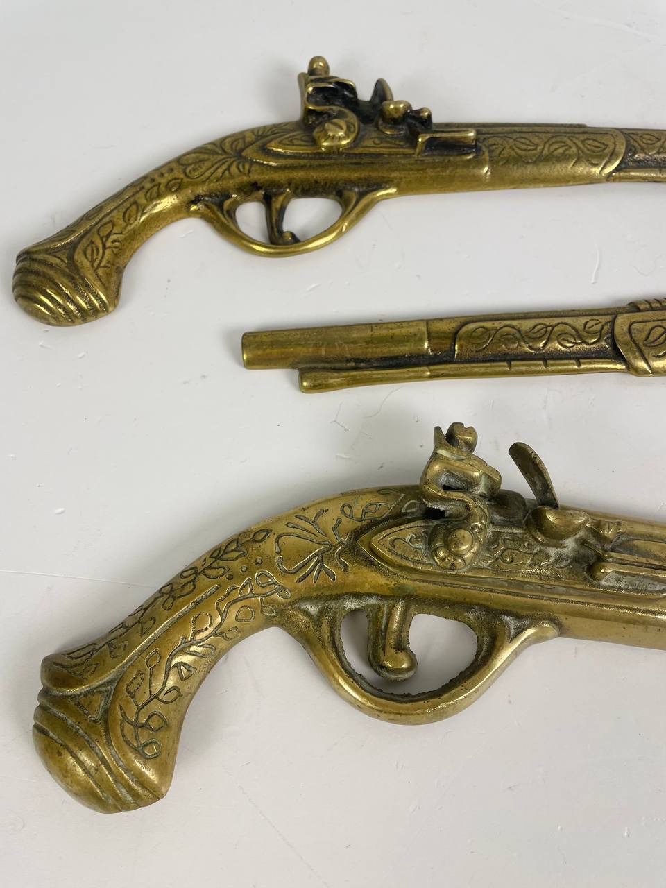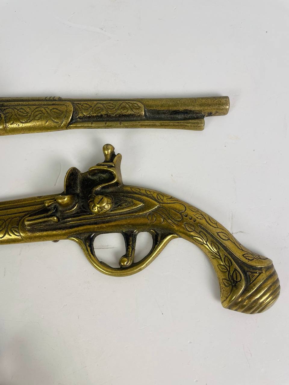Винтажный набор декора в виде капсюльных пистолетов на подобие оружия начала XIX века. Выполнен из бронзы. Размер каждого 32х10 см.
