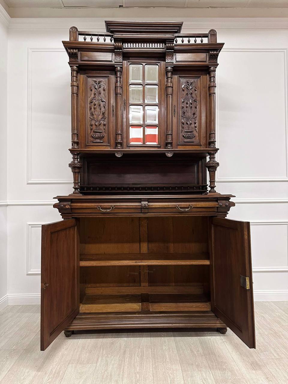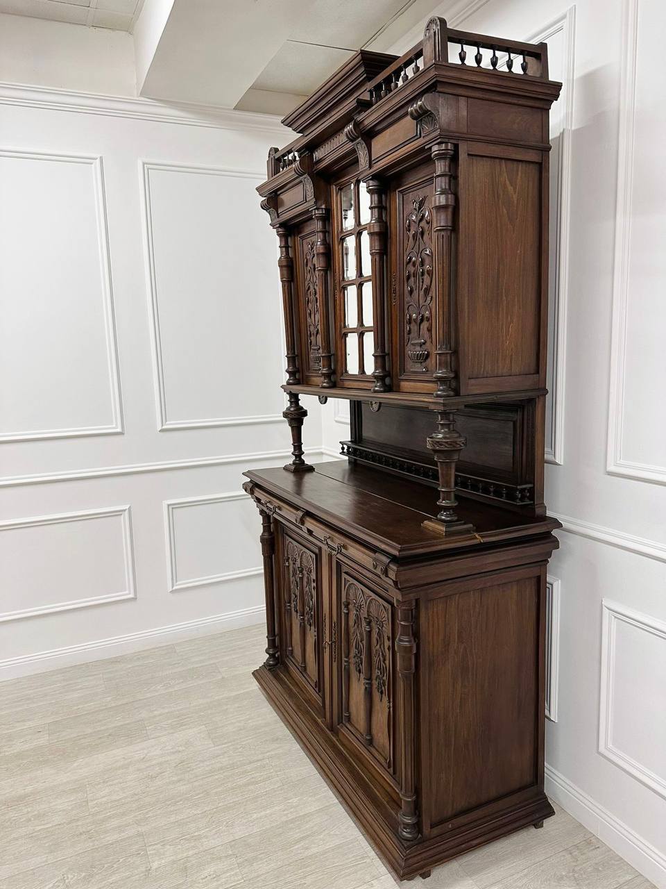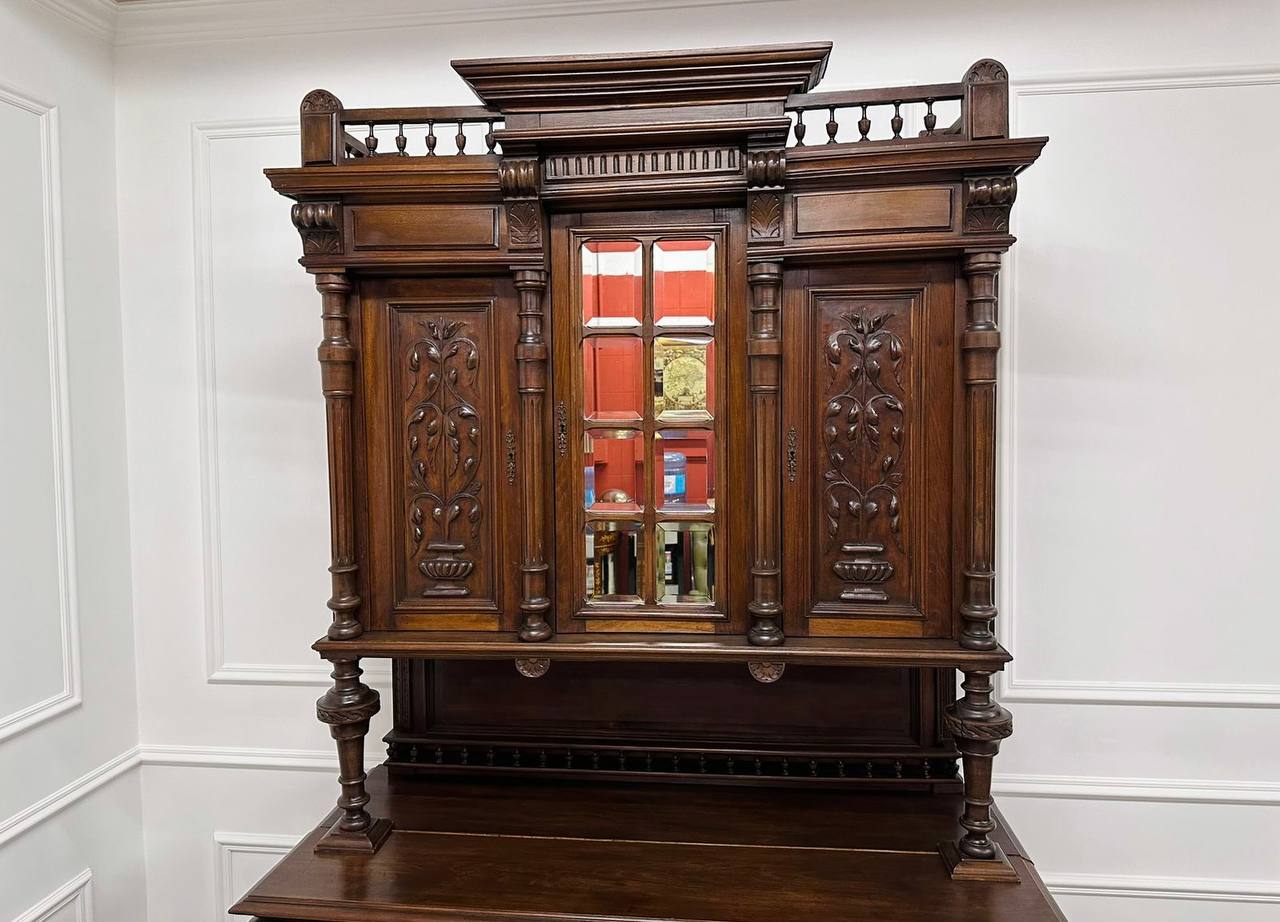Буфет рубежа XIX-XX вв, Франция. Выполнен из массива ореха. Оригинальная фурнитура и стекла с фацетом. Размер 132х56х235h см.