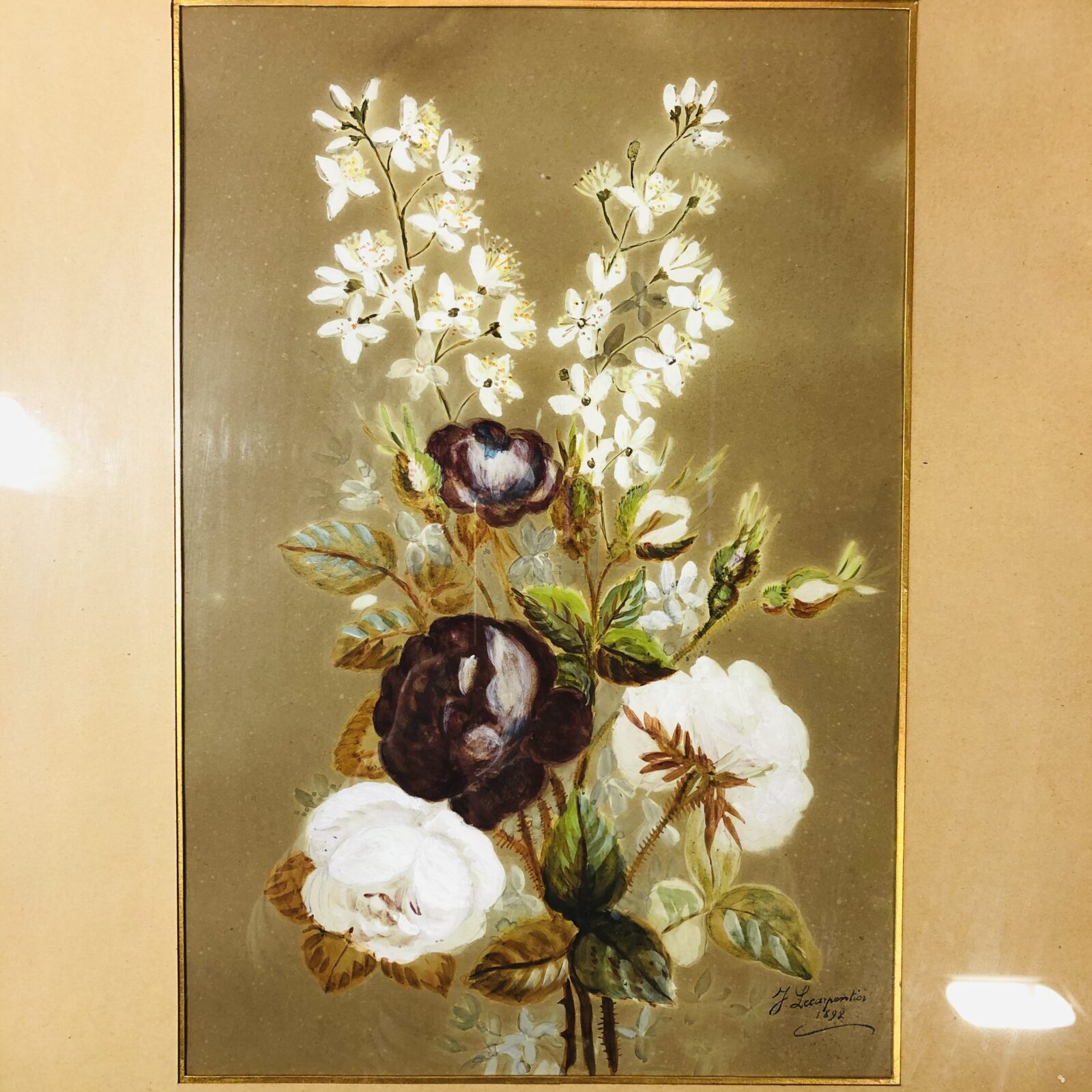 "Букет" антикварная акварель, J. Carpentier 1892 г.