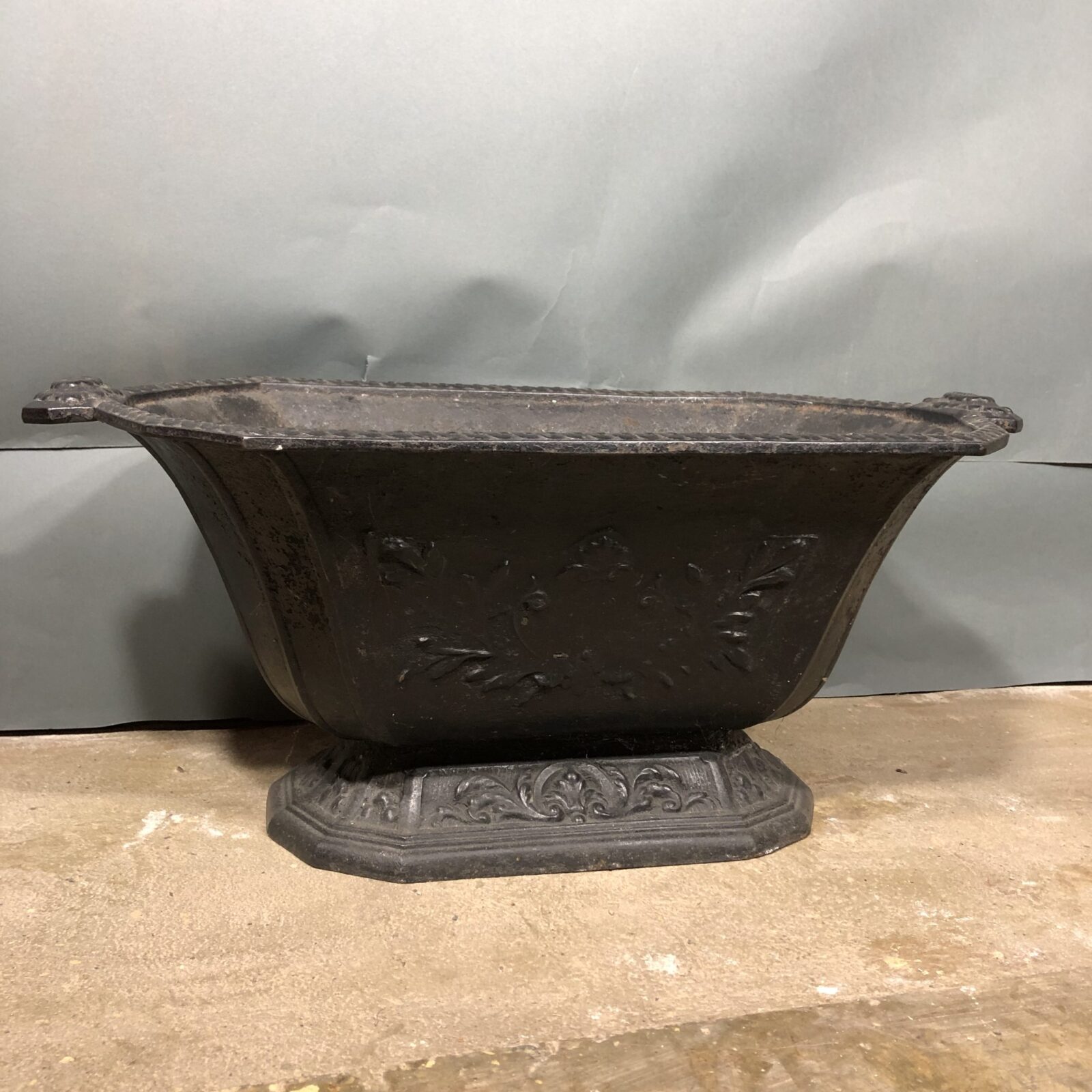 Большое чугунное антикварное кашпо XIX-XX века Франция. Размер 60х32х25h см.
