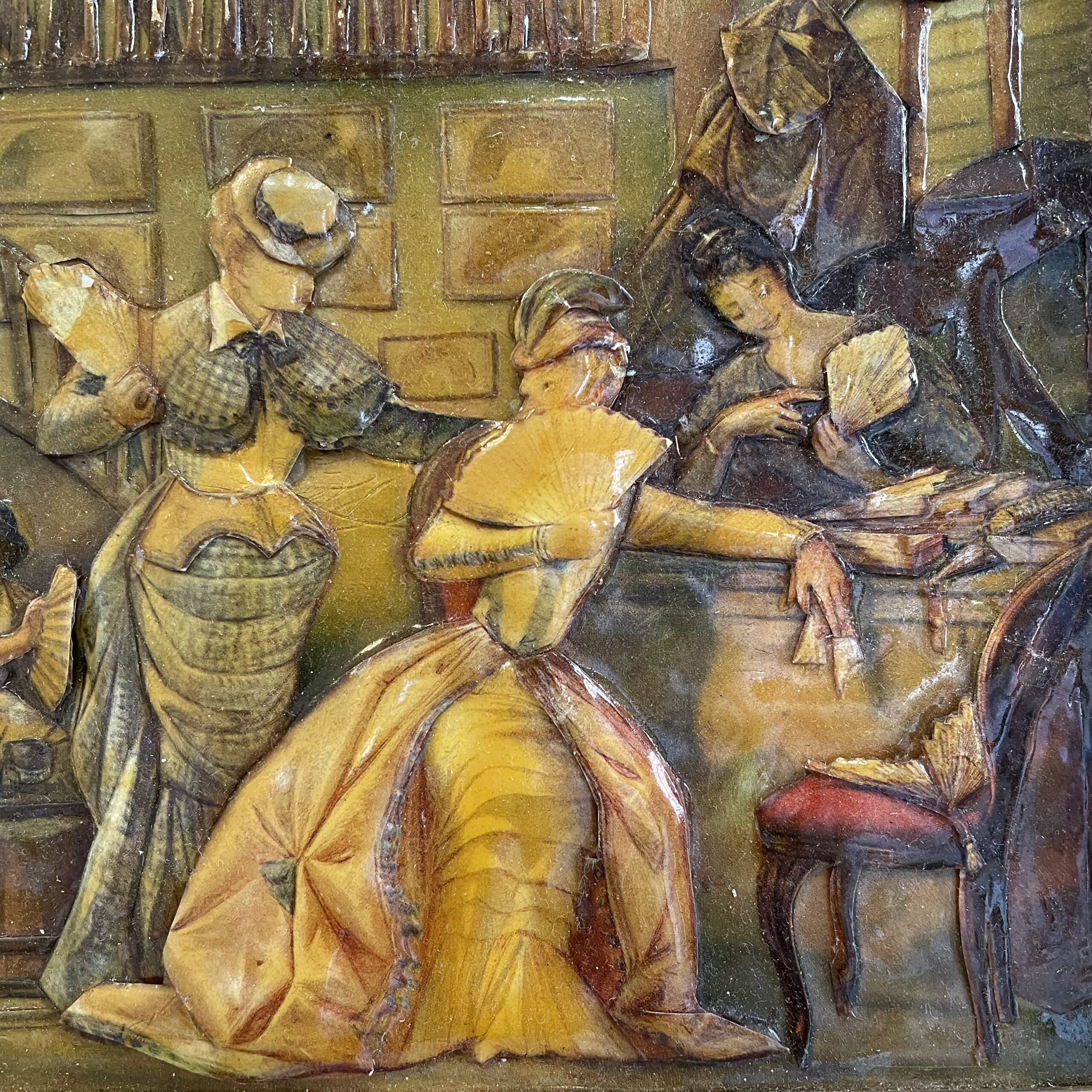 «Дамы с веерами» винтажная, объемная картина, 1980 годы.