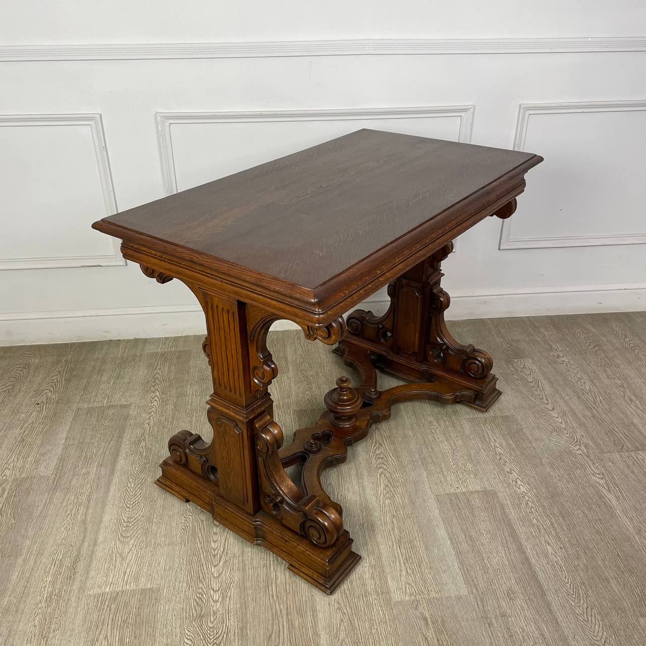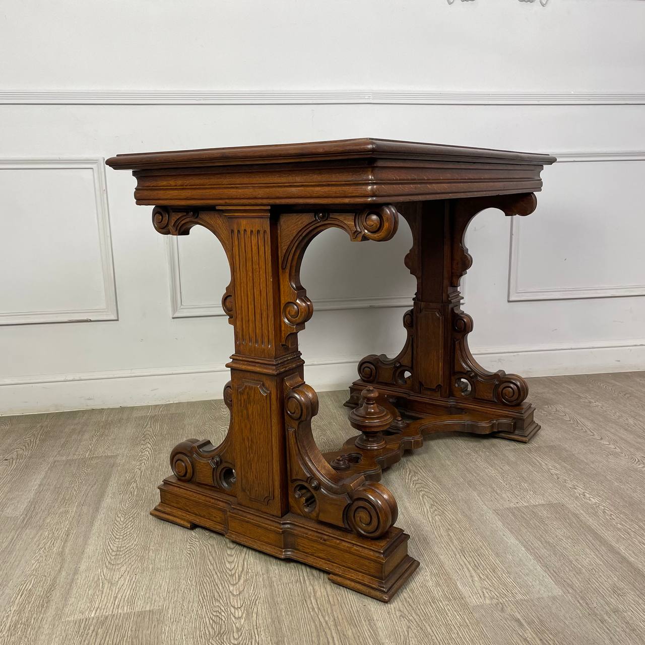 Десертный столик XIX века, Франция. Очень редкий вариант механического десертного столика, который раскладывается в три яруса. Выполнен из массива дуба. Размер 100х58х76/104h см.