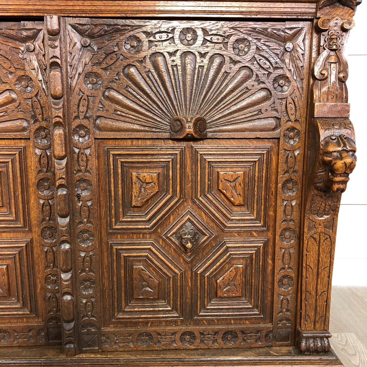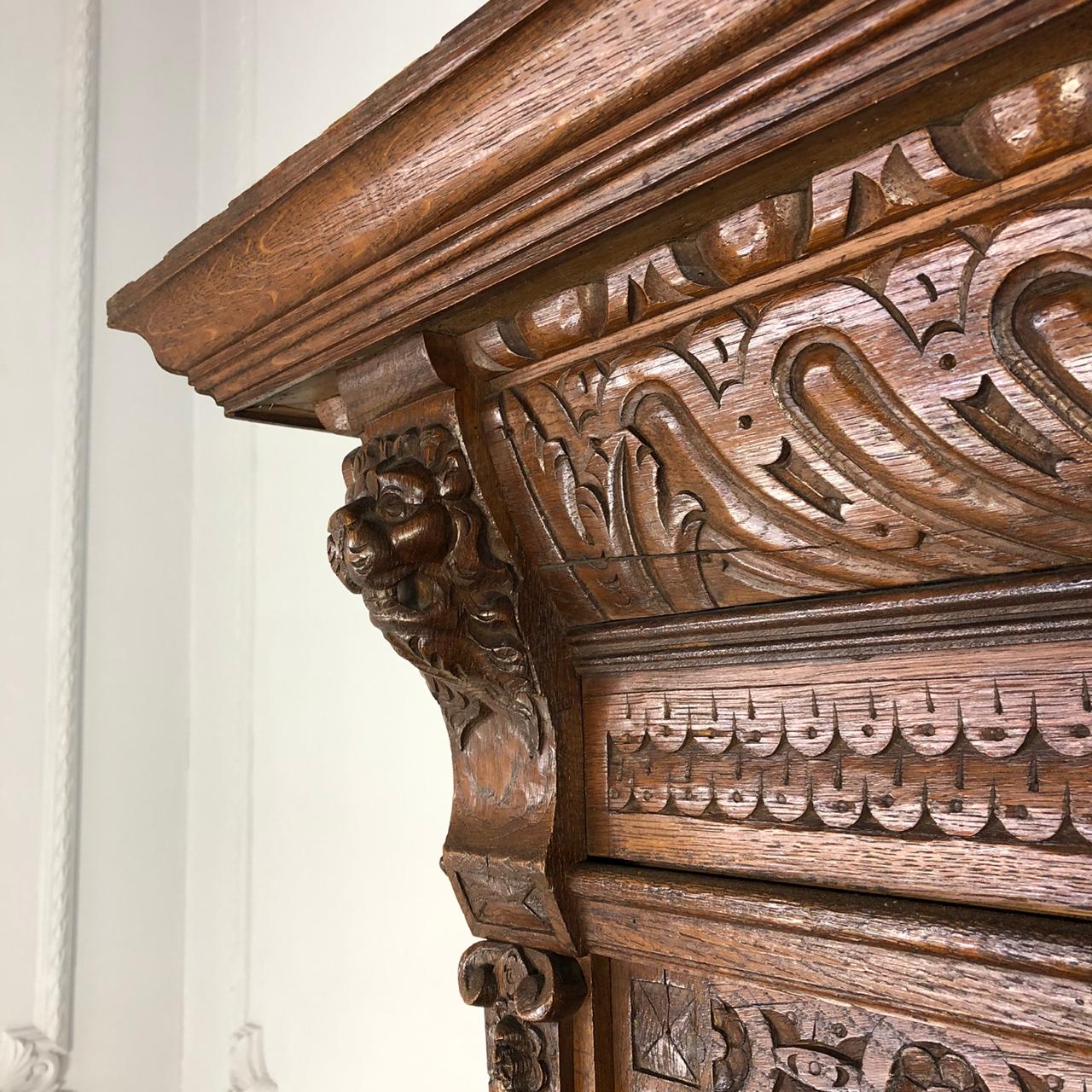 Дубовый буфет антикварный рубежа XIX-XX века, Бельгия. Выполнен из массива дуба, красивая резьба ручной работы. Размер 125х53х205h см.