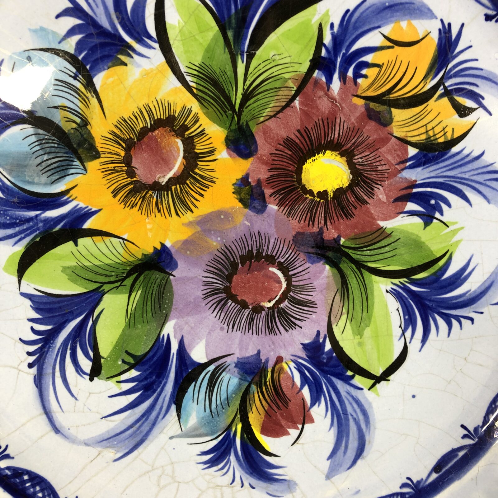 Фаянсовое антикварное блюдо середины XX века Португалия. Майолика, ручная роспись. Диаметр 40 см.