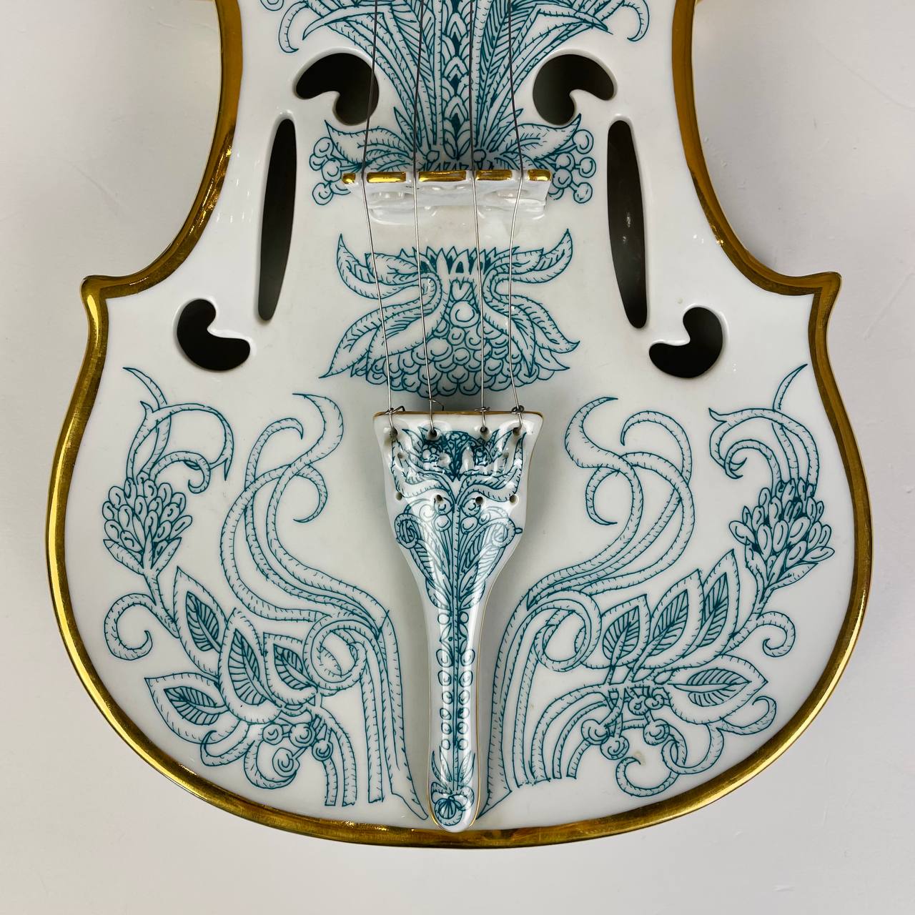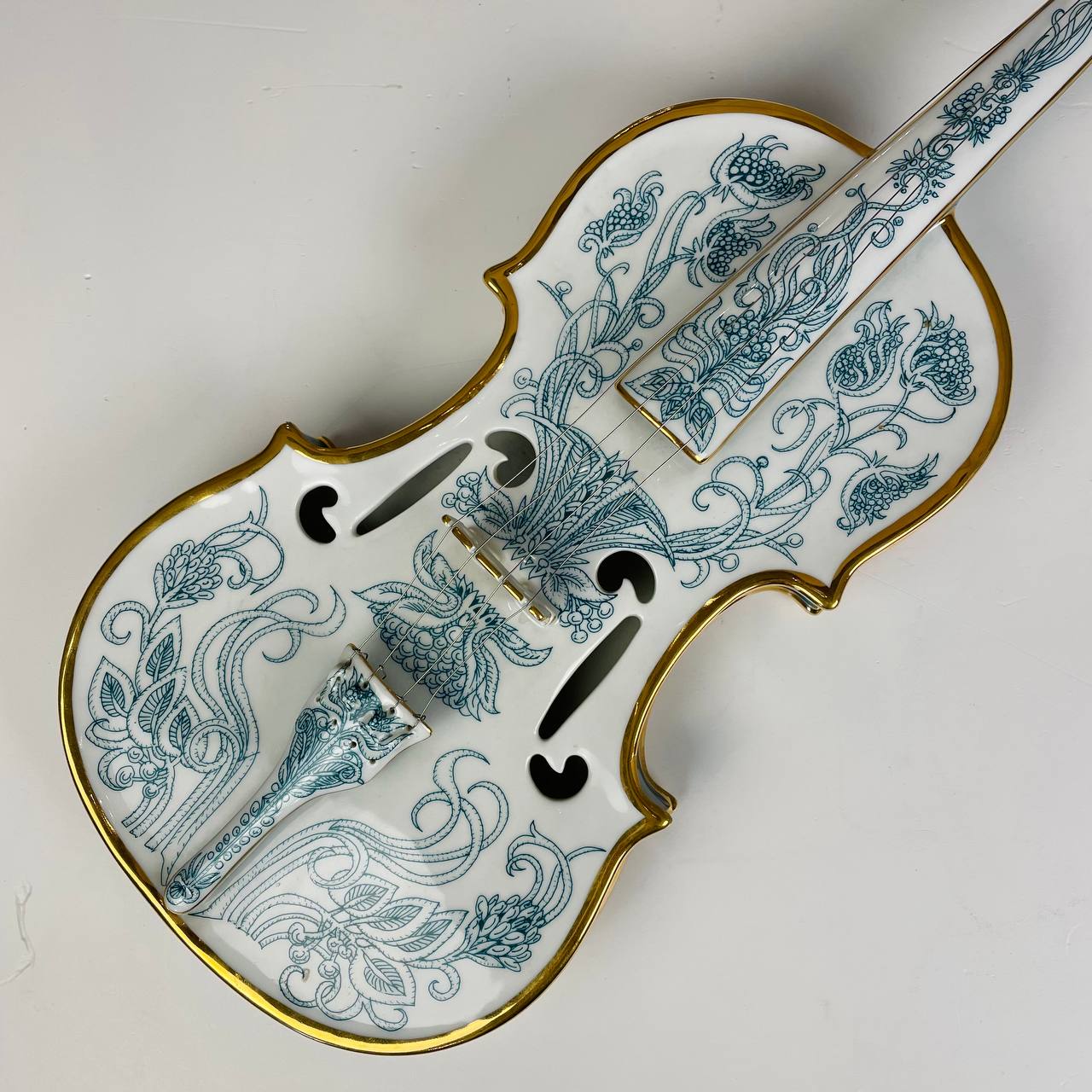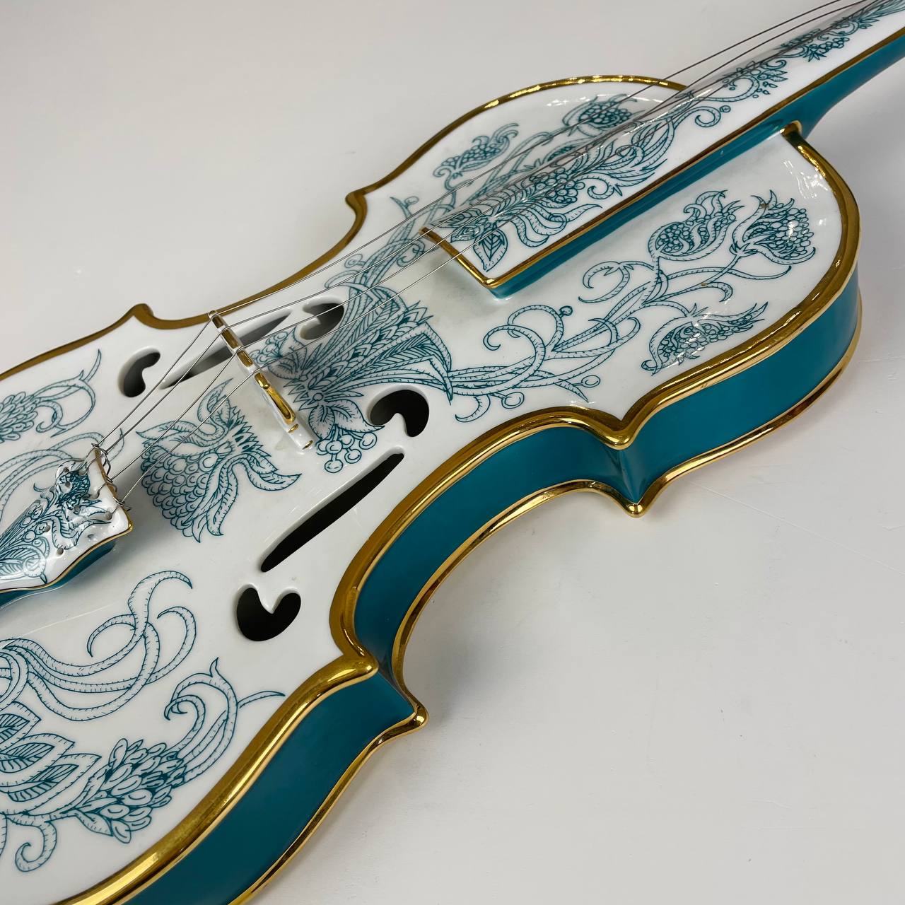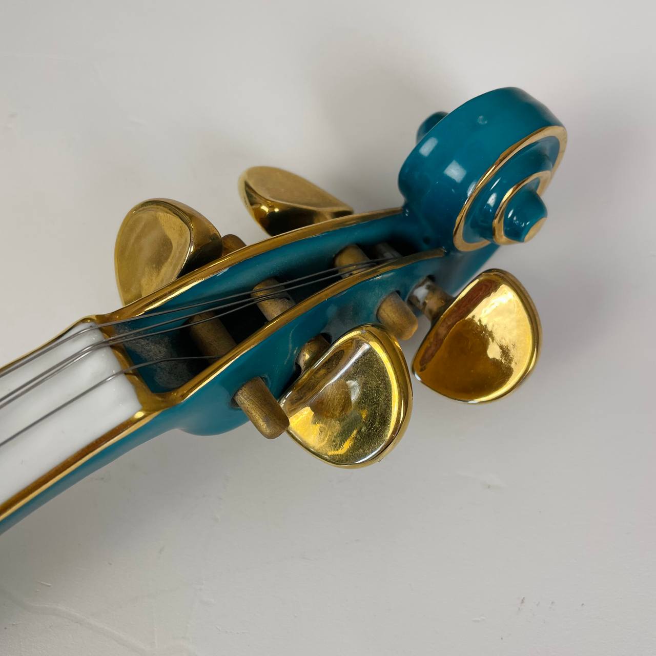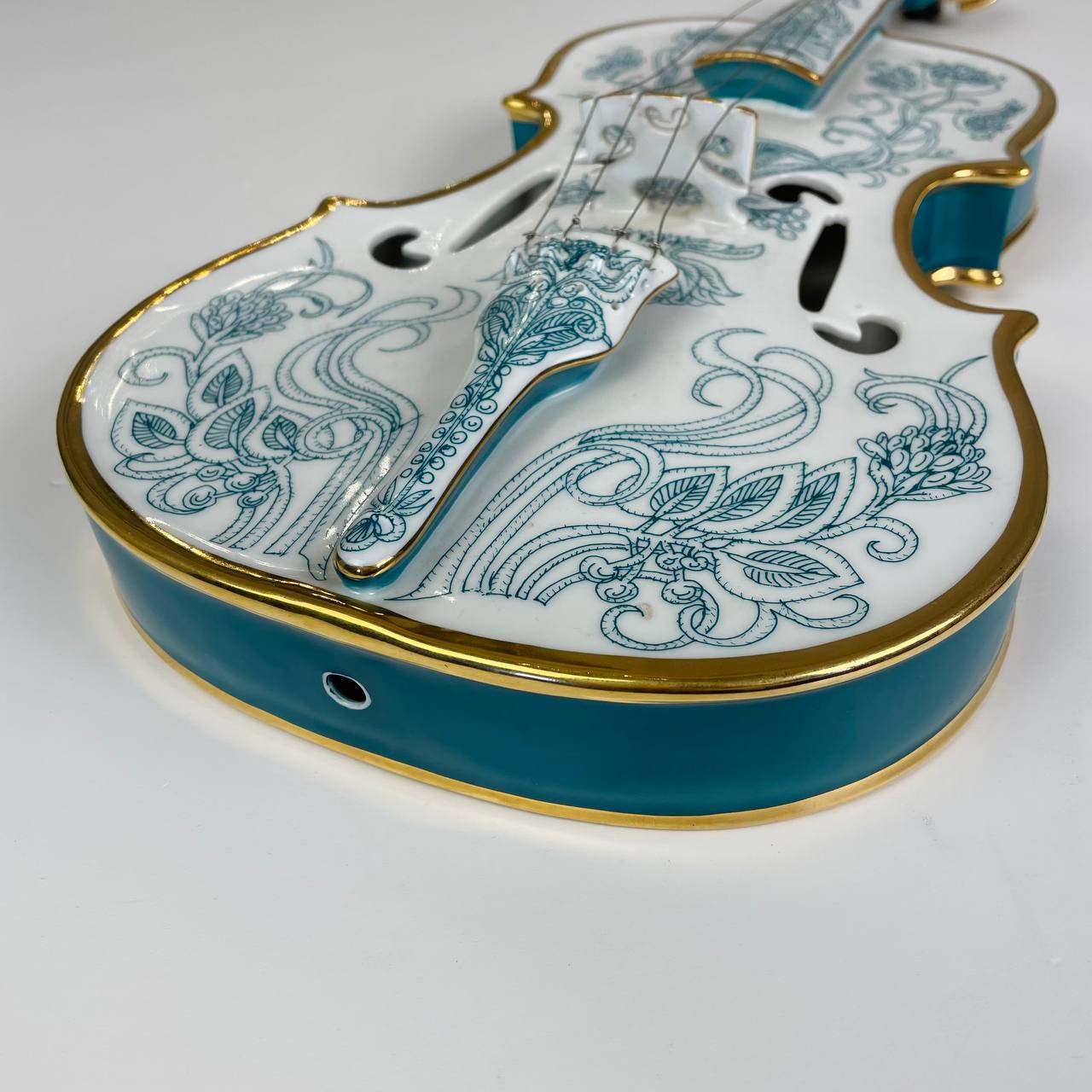Фарфоровая декоративная скрипка, Европа. Ручная роспись, позолота. Размер 21х9х57h см