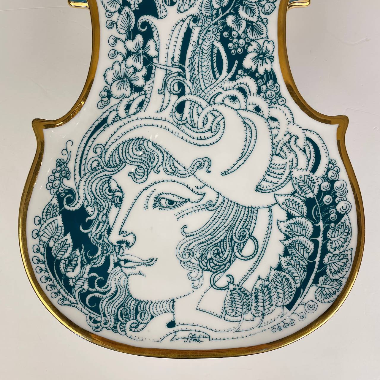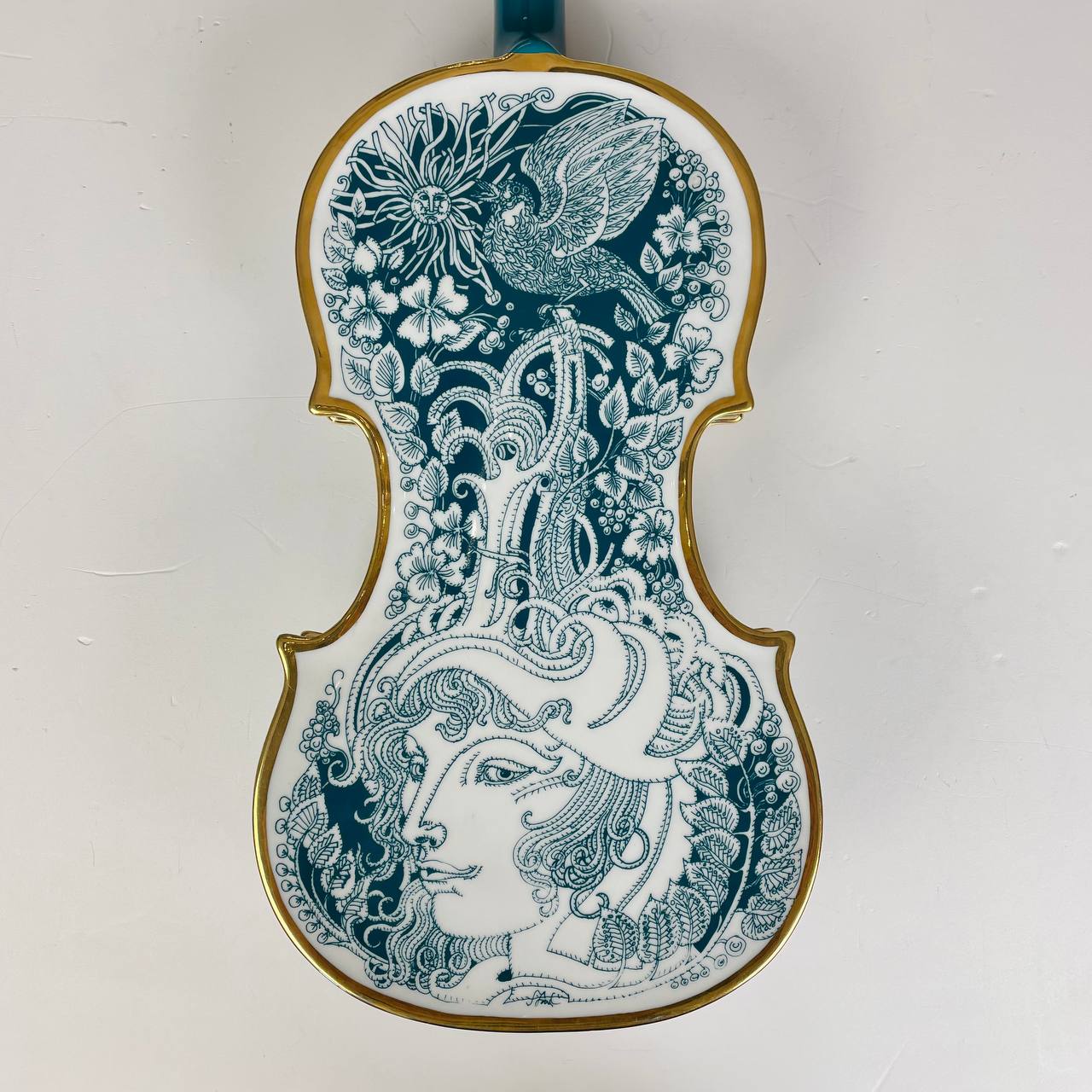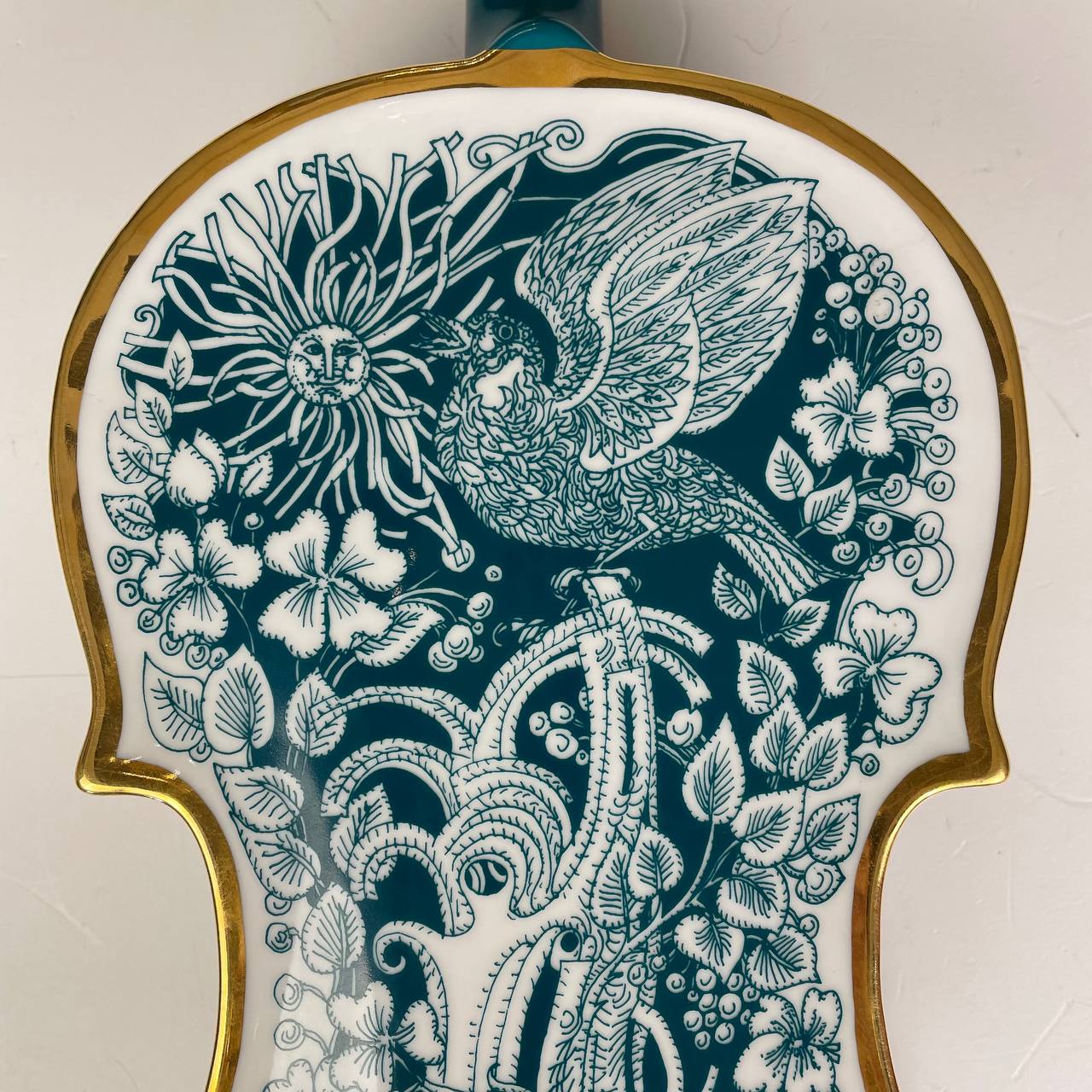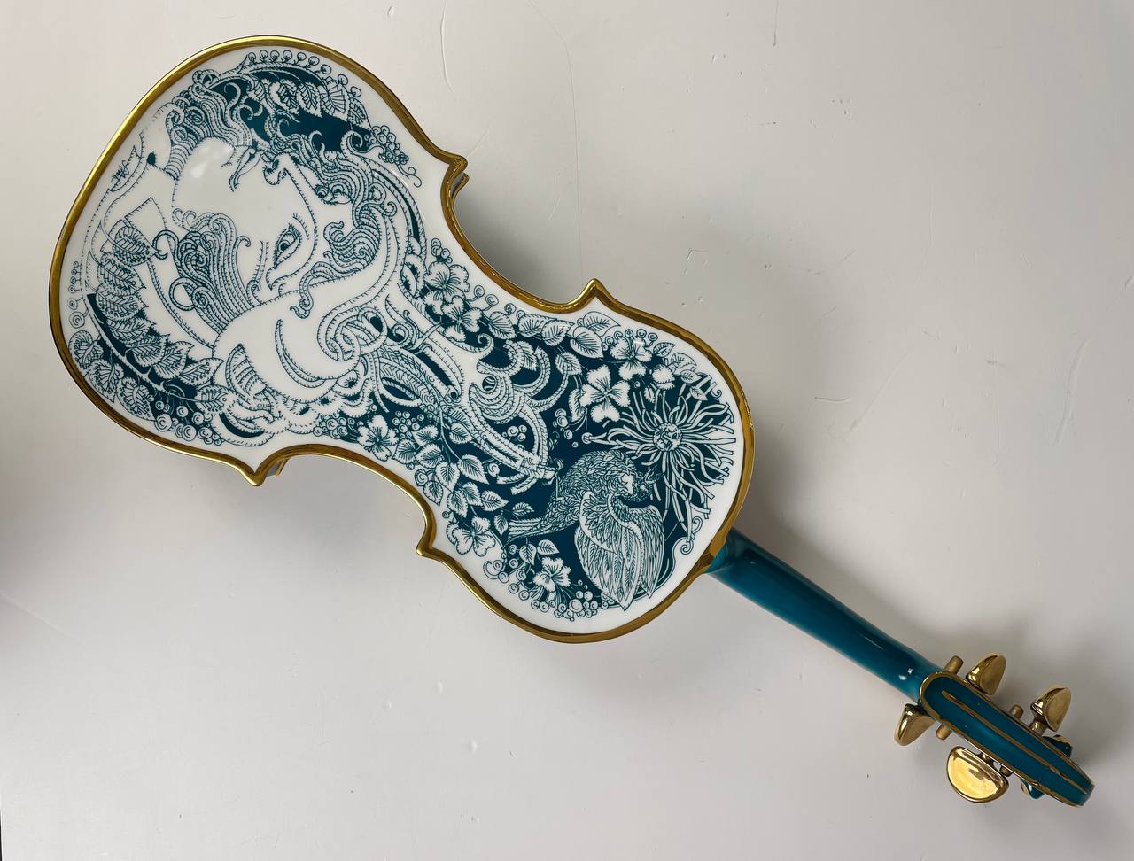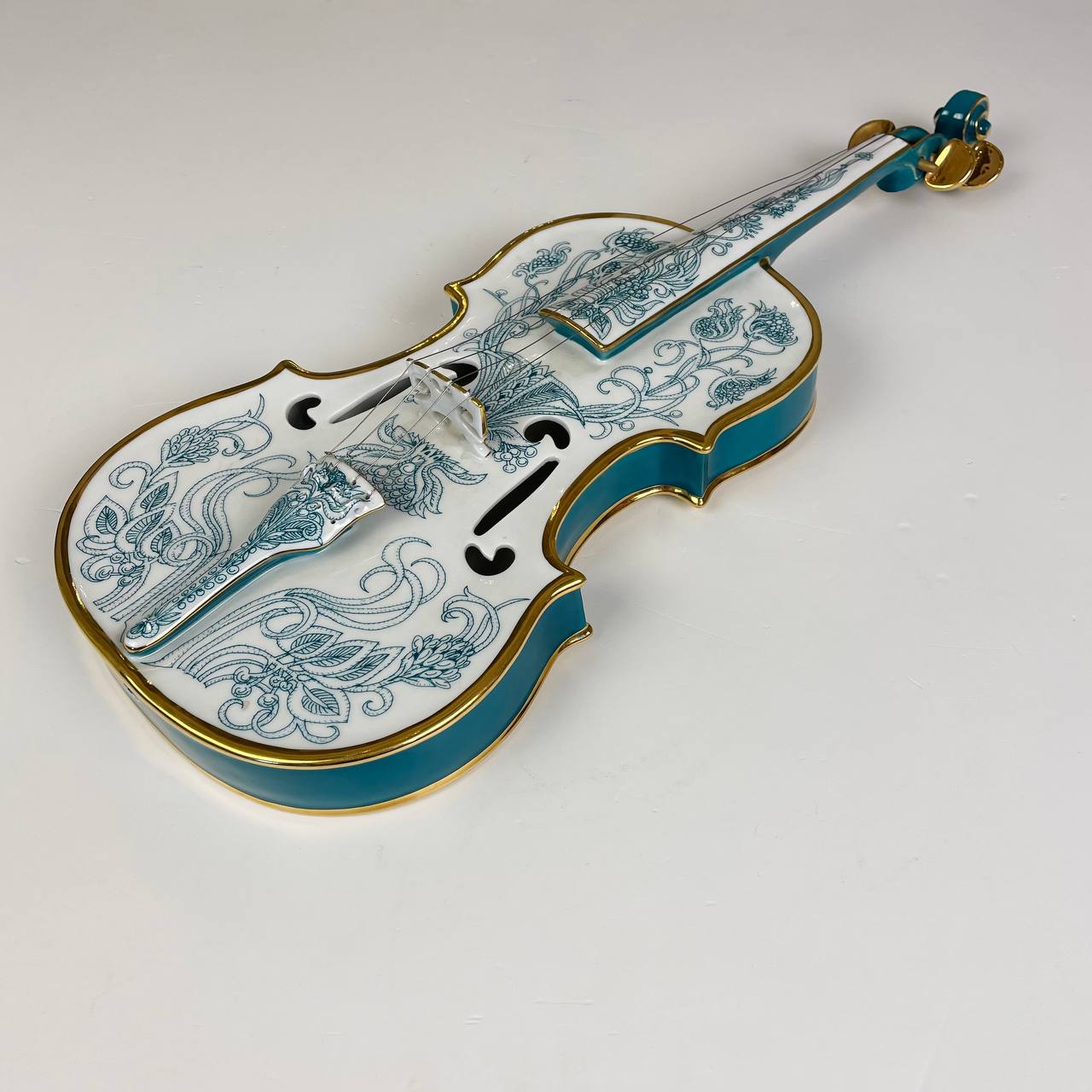 Фарфоровая декоративная скрипка, Европа. Ручная роспись, позолота. Размер 21х9х57h см