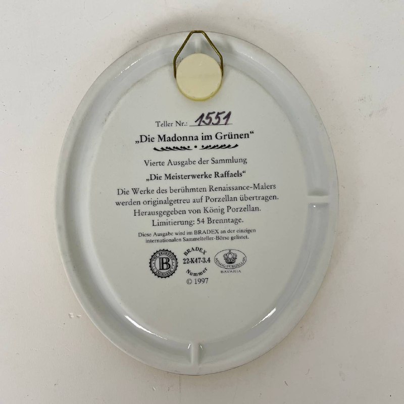 Номерной фарфоровый медальон с репродукцией живописи Рафаэля, вторая половина ХХ века, Бавария, Германия. Размер: 11х14h см.