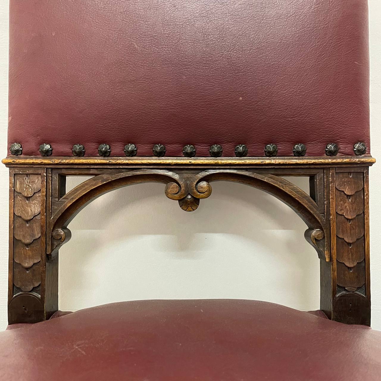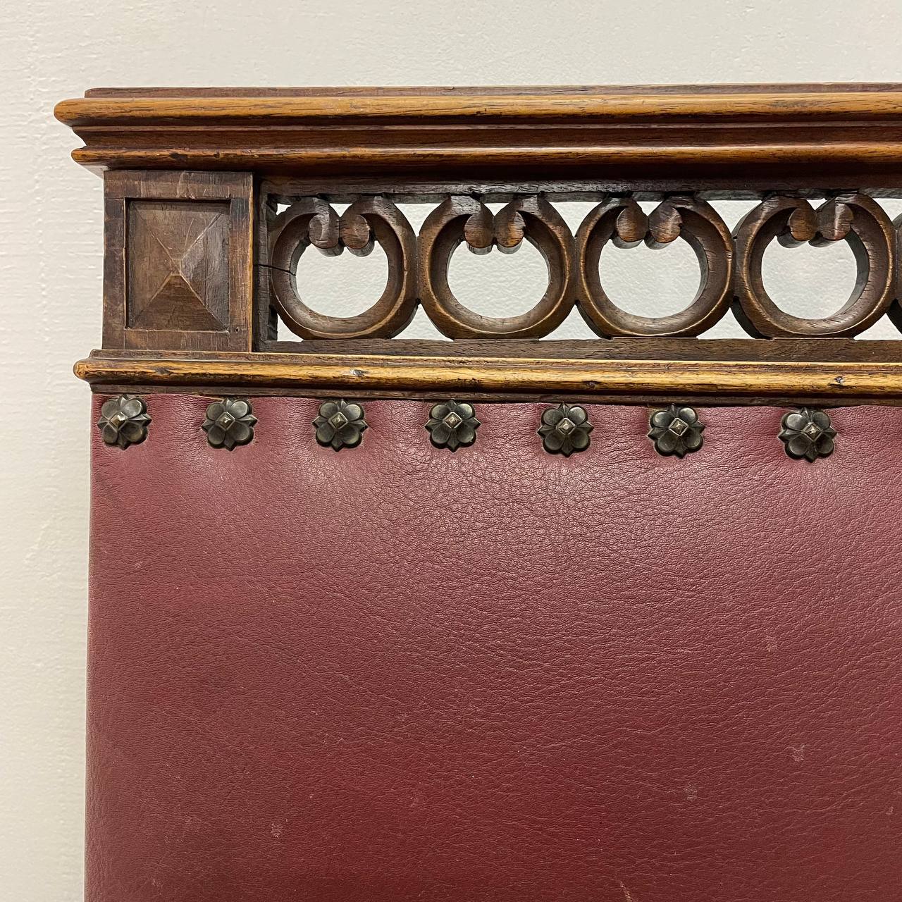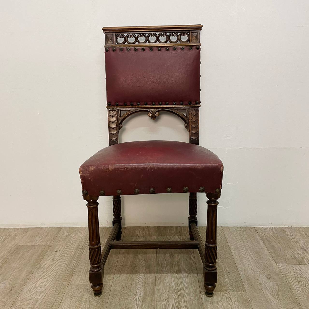 Гарнитур антикварных стульев 6 шт конца XIX века, Бельгия. Выполнены из массива ореха. Резьба ручной работы. Оригинальные фигурные гвозди. Размер 47х43х95h см